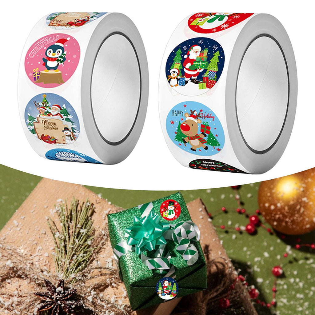 【Christmas Day decoration】: Christmas Stickers Roll, 500 Xmas Label Tag Seal, bright colors, very suitable for Christmas Day gift