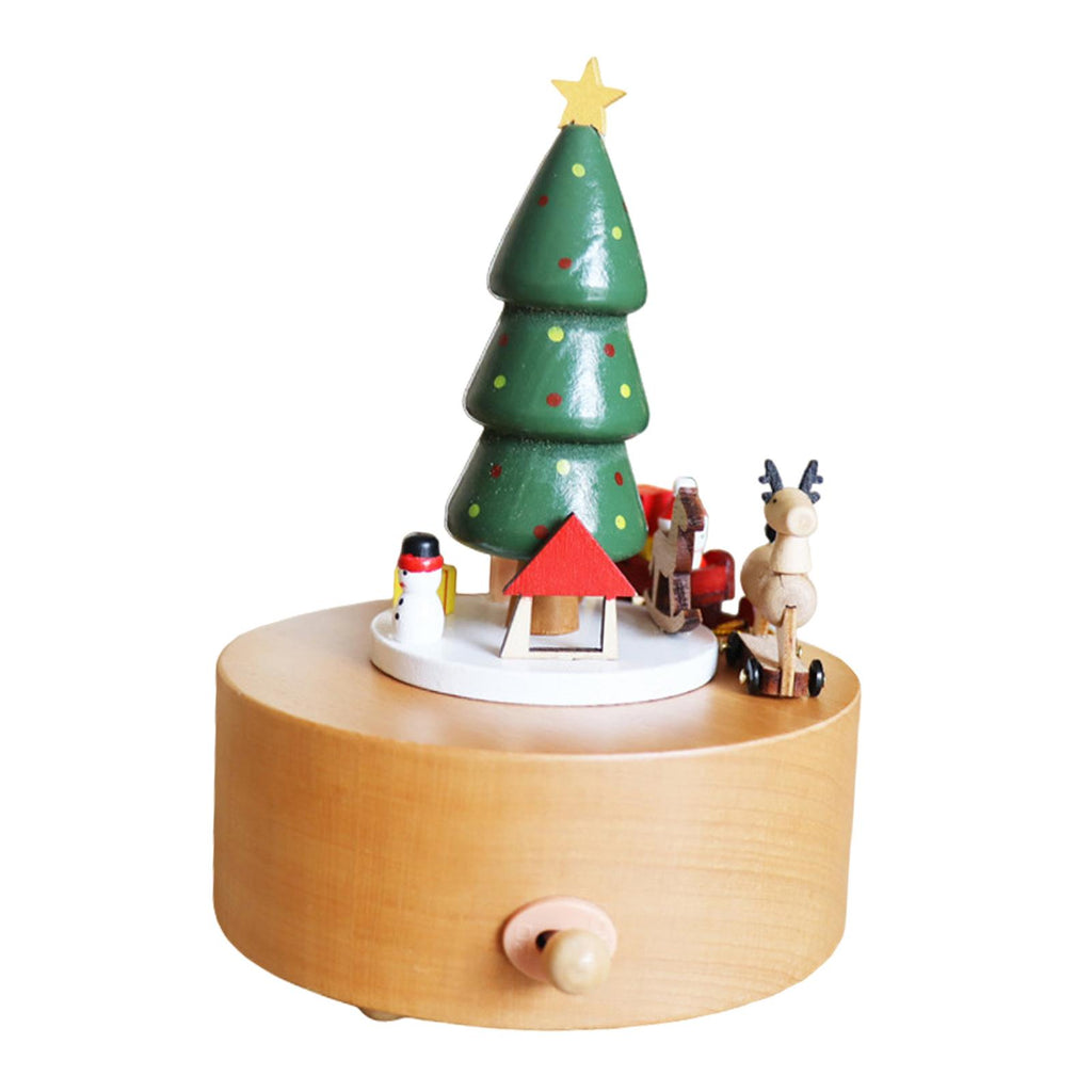 Maxbell Christmas Wooden Musical Box Rotating Music Box for Kids Wife Girlfriend Deer