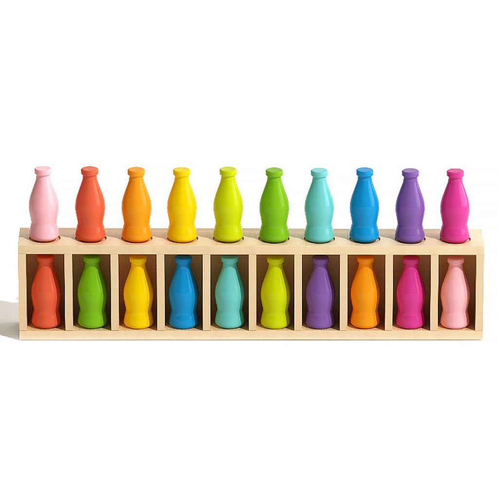【Premium Quality】: Made from quality wooden, this color matching toy ensures security with its thoughtful groove design that prevents bottles from easily falling
