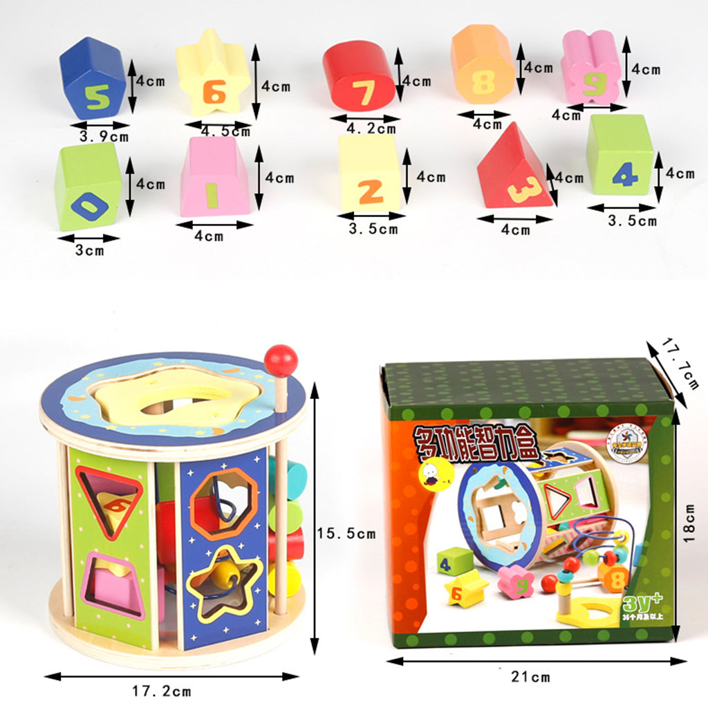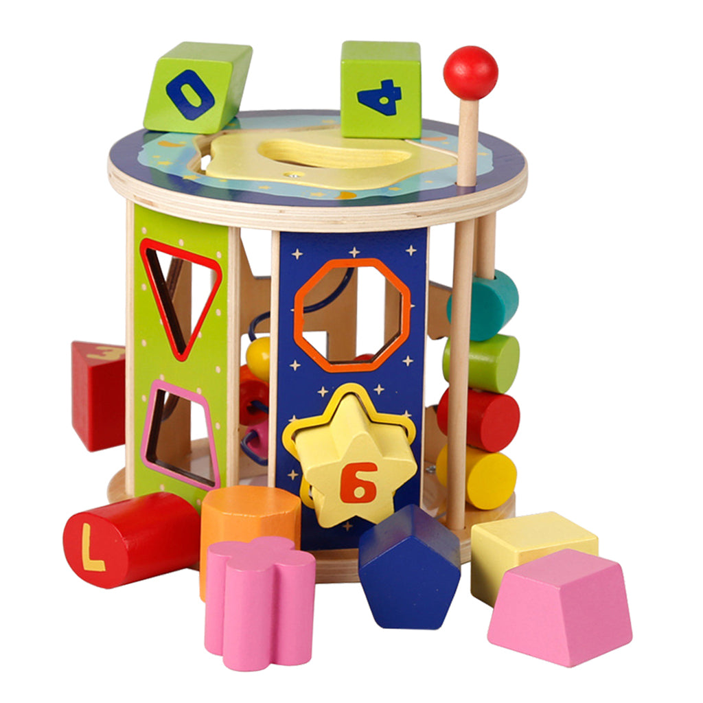 Shape and color cognition early development, brightly colored & smooth beads with solid wooden base