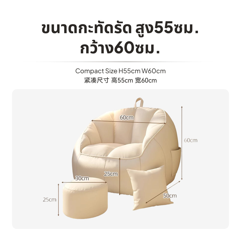 Experience relaxation with this modern beanbag chair, designed for bedrooms and balconies.Crafted from breathable cotton-linen or durable tech fabric, offering comfort and easy maintenance.Features a single-seat design filled with eco-friendly EPS beads for optimal support.Conveniently designed with removable covers for easy cleaning, side pockets for storage, and a carrying handle for mobility.Dimensions: Seat height 25cm, total height 55cm, width 60cm, and base width 45cm. Perfect for bedrooms, balconies, and living rooms.