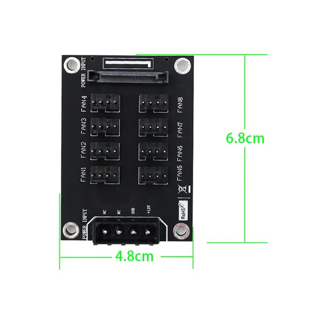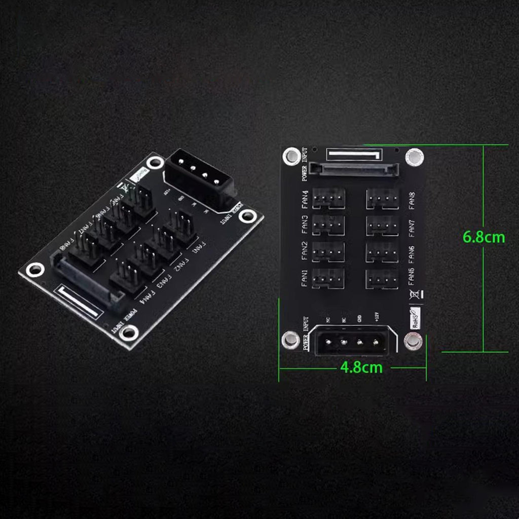 【Expansion Capability】With the ability to expand up to eight fan interfaces, this Fan Adapter effectively addresses the issue of insufficient power supply interfaces for cooling fans.