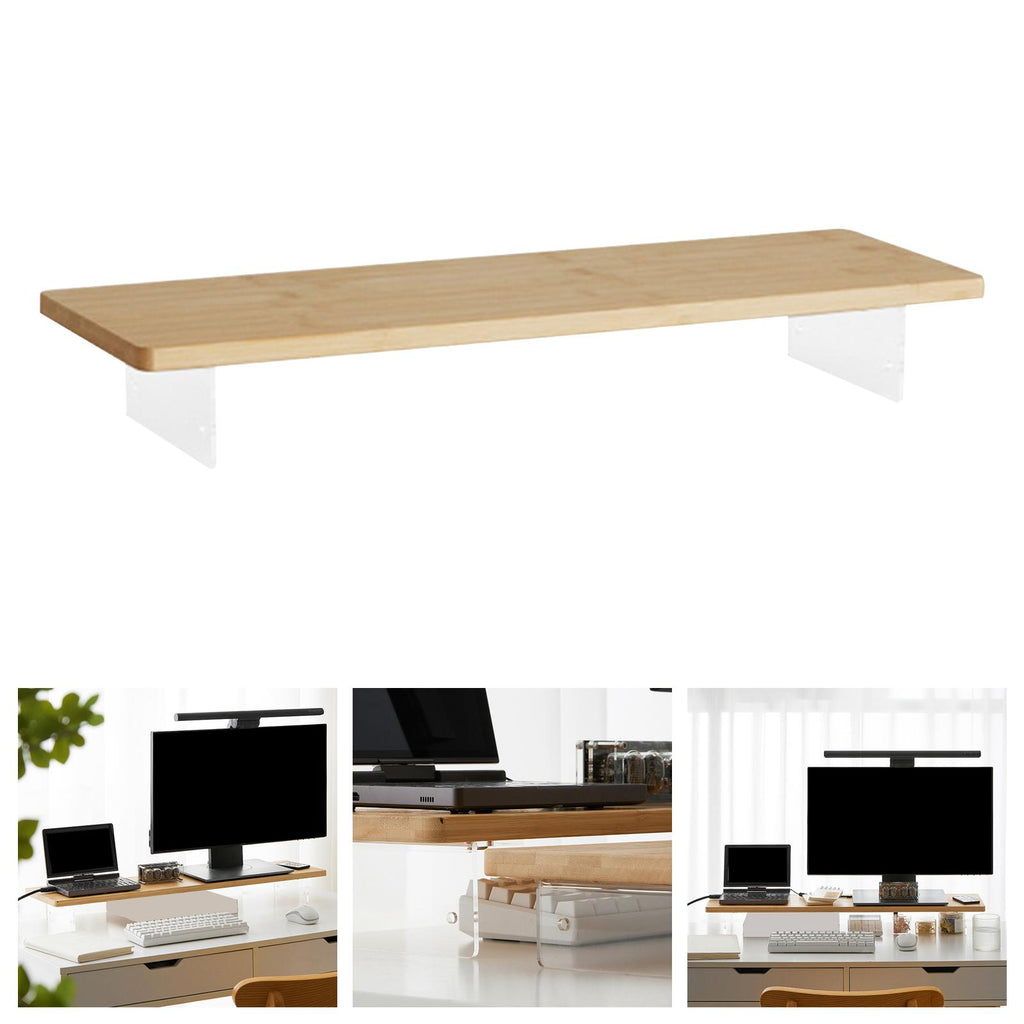 【High-Quality Material】: This monitor stand is made of high-quality wood and acrylic materials, ensuring durability and long-term use. It's sturdy enough to support your computer monitor or other office supplies.