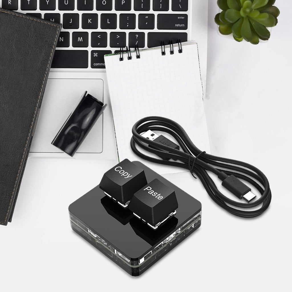 Maxbell Copy and Paste 2 Key Keyboard RGB USB Mini Keyboard 2 Keys for Audio Drawing black