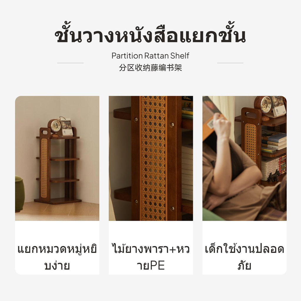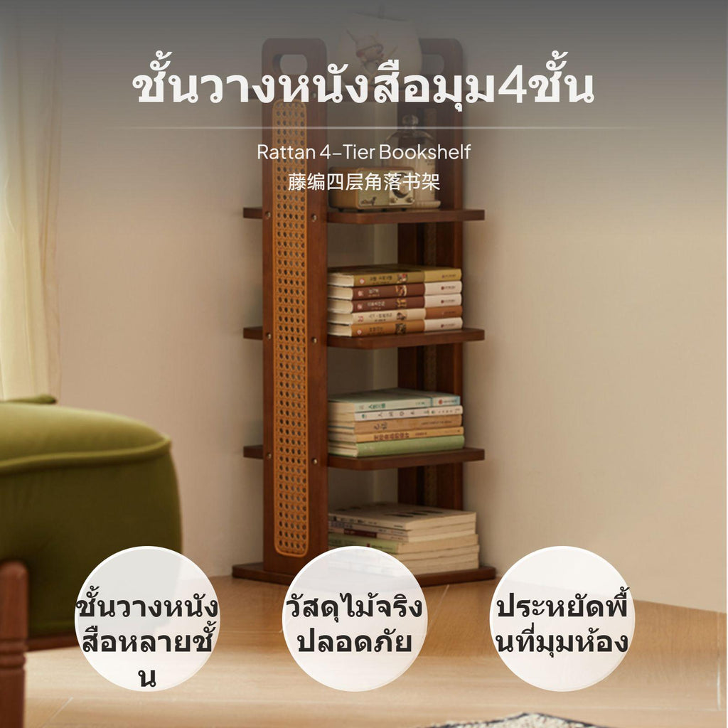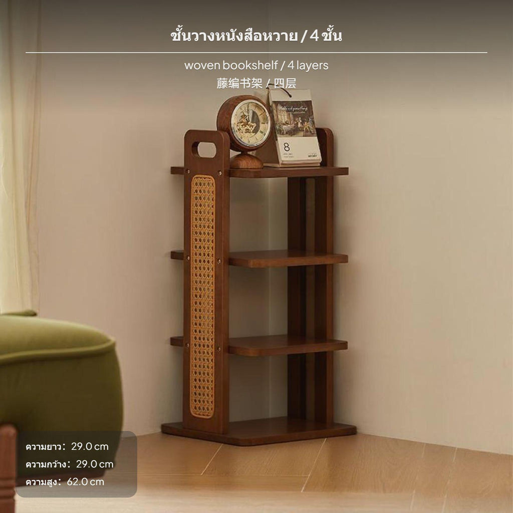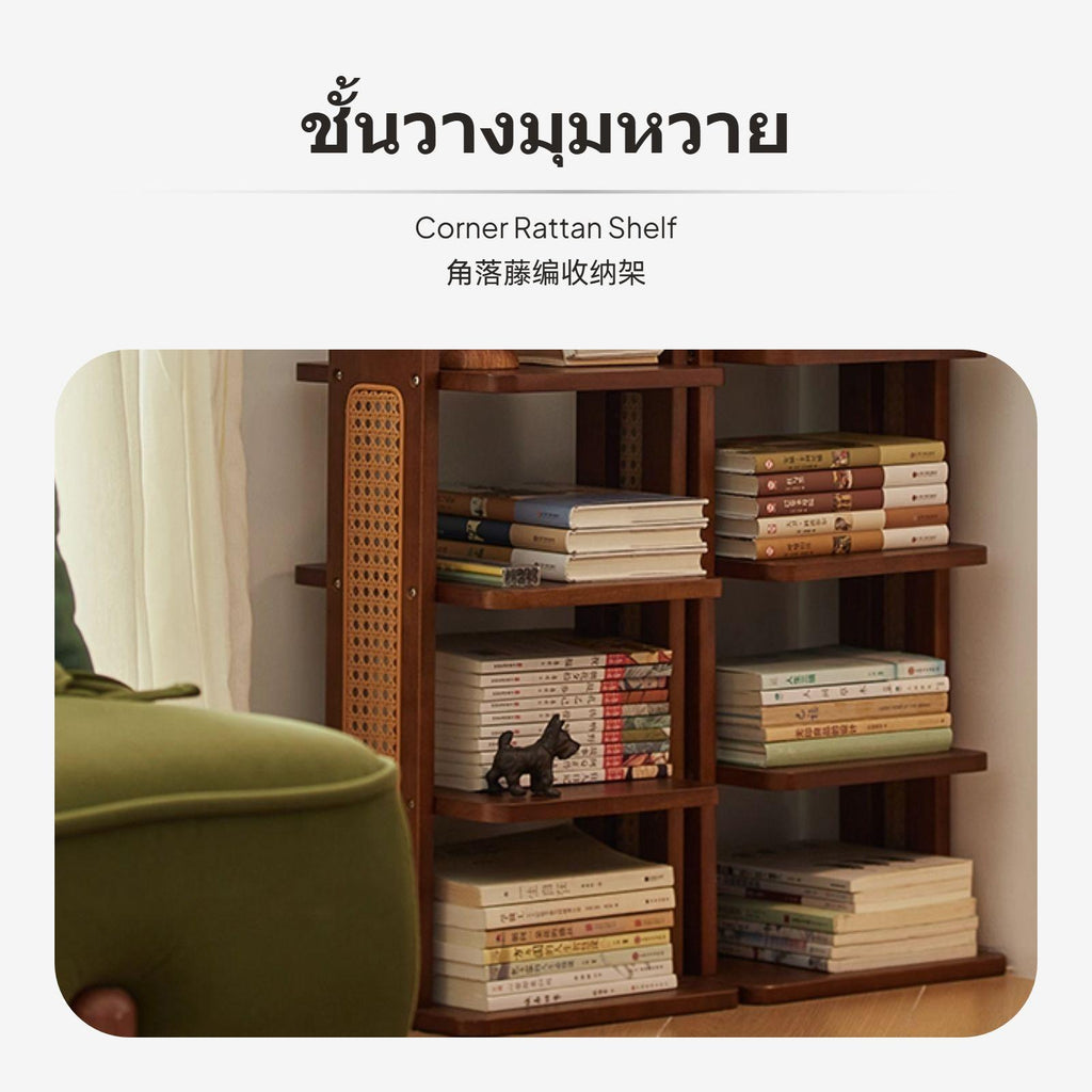 [Space-Efficient Multilevel Design] This corner shelving unit is crafted for home perusing nooks, children's rooms, and living spaces, using its space-saving footprint and tiered framework to maximize storage.[Sturdy Rubber Wood & Rattan combination] Constructed from firm rubber wood with elegant rattan embellishments, this narrow cabinet seamlessly integrates vintage aesthetics with modern storage functionality.[Stable Thickened Boards & Base] Enhanced with thick shelves and a reinforced base, the display rack stays stable even when loaded with children's picture books or everyday essentials.[Easy Assembly with step-by-step instructions] Featuring an open-sided construction for ventilation and easy book retrieval, an installation instructional demonstration is provided for hassleeffortless home setup.[adaptable Placement for Any Room] Perfect as a children’s book organizer, corner toy rack, or decorative piece in bedrooms and living rooms, making any corner warm and stylish.