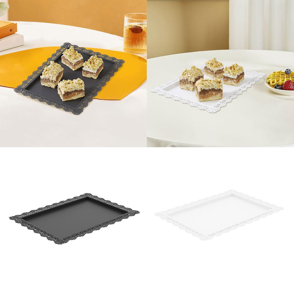 Material & Sizes: This fruit dessert plate is made from iron, ensuring longevity and durability. This coffee tea serving tray measures 36x26x3.5cm ensures ample space for all your serving needs