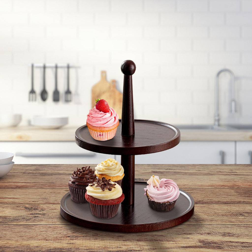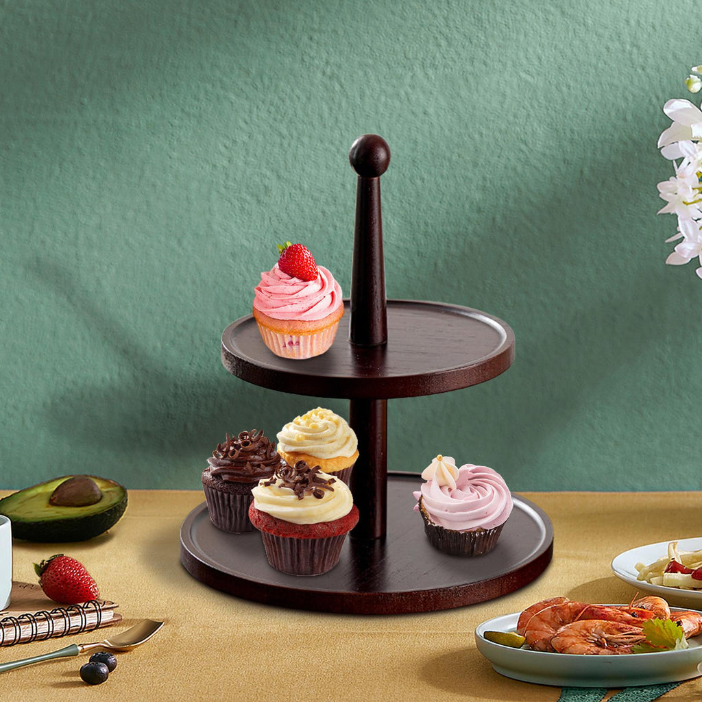 Maxbell Cupcake Stand Decorative Fruit Plate for Birthday Baby Shower Tea Party 2 Tiers Dark Brown