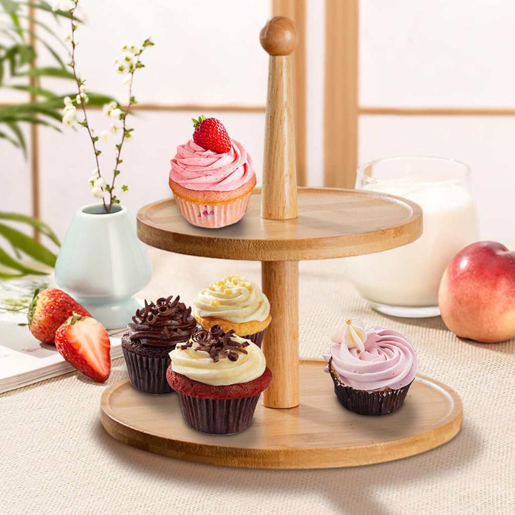 Maxbell Cupcake Stand Decorative Fruit Plate for Birthday Baby Shower Tea Party 2 Tiers Light Brown