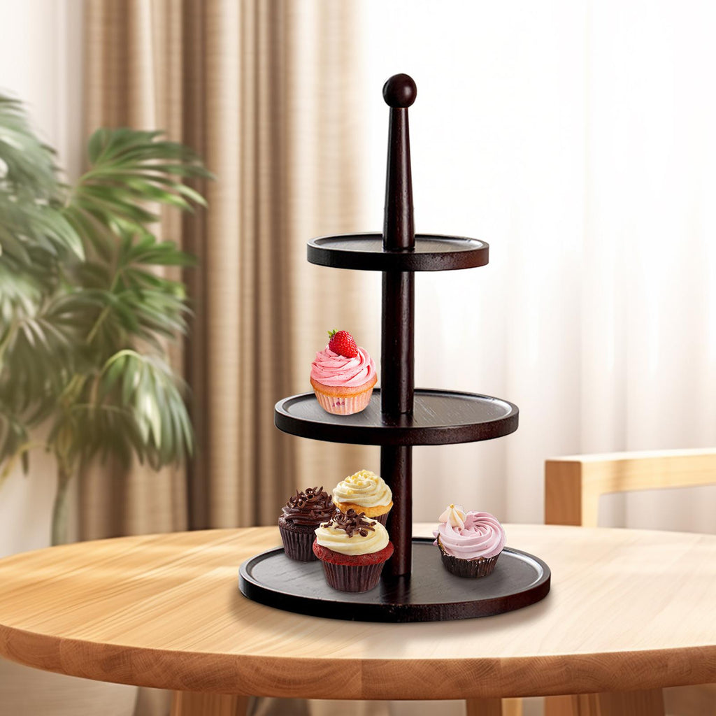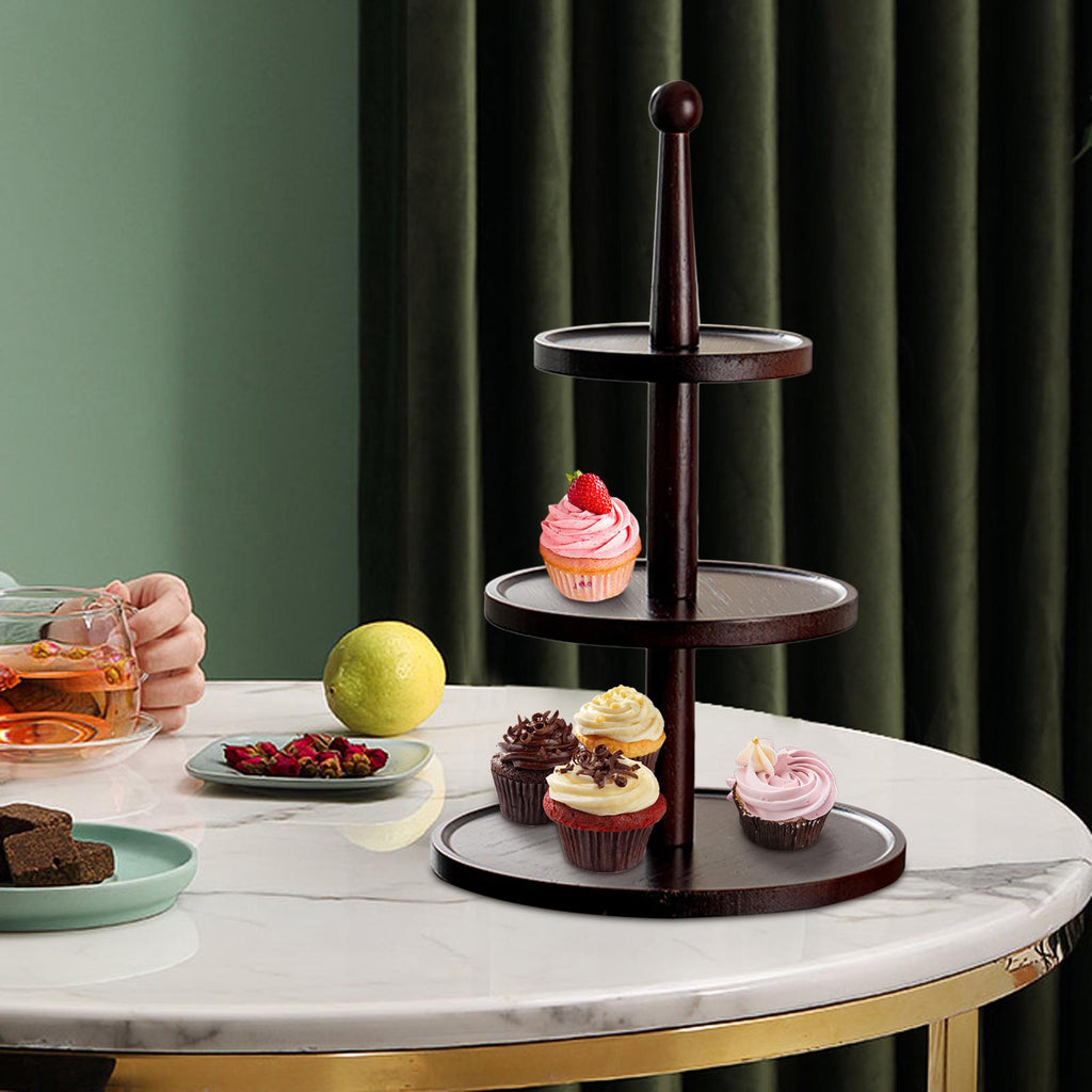 Maxbell Cupcake Stand Decorative Fruit Plate for Birthday Baby Shower Tea Party 3 Tiers Dark Brown