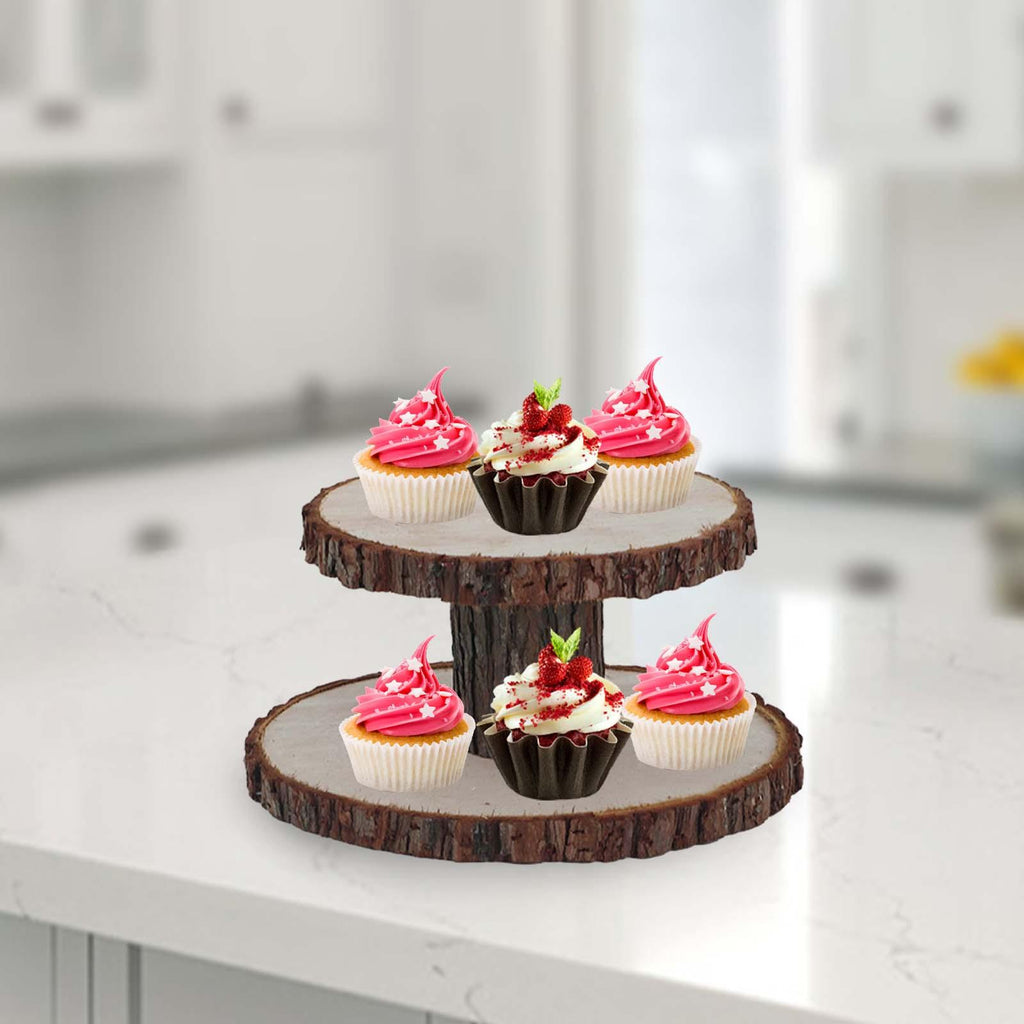 Maxbell Cupcake Tower Wood Parties Tableware Multifunctional Round Plates Cake Stand 2 tier large
