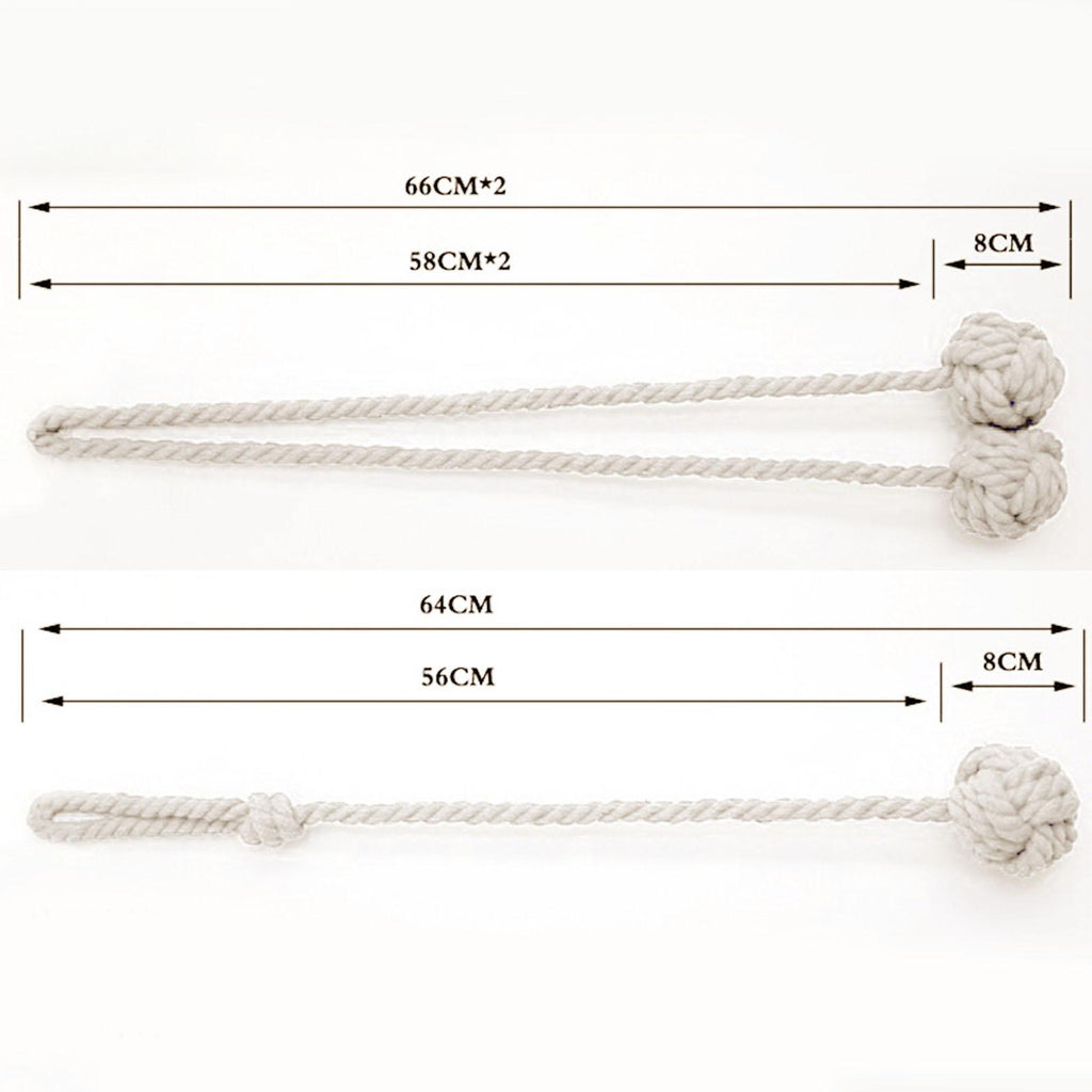 【Product Dimensions】: The single ball curtain tieback measures a total length of 64CM when laid flat, with a rope length of 56CM and a ball diameter of 8CM.