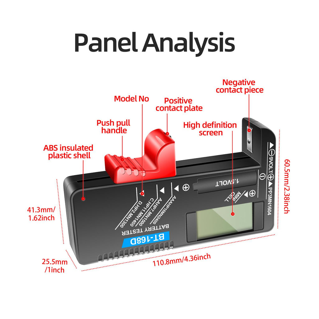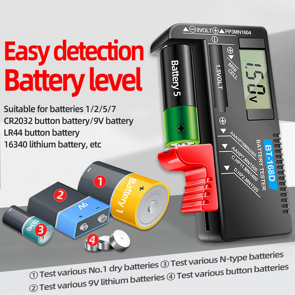 【Convenient】: Battery Voltage Measurement, LCD display, easy to read, digital display on the tester, you can quickly test your battery capacity.