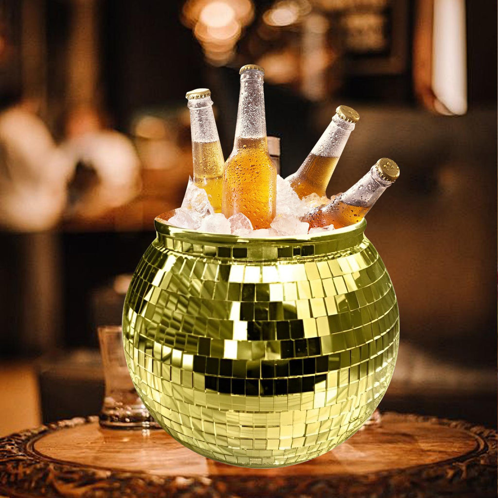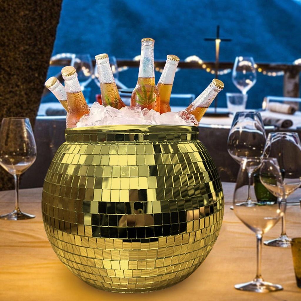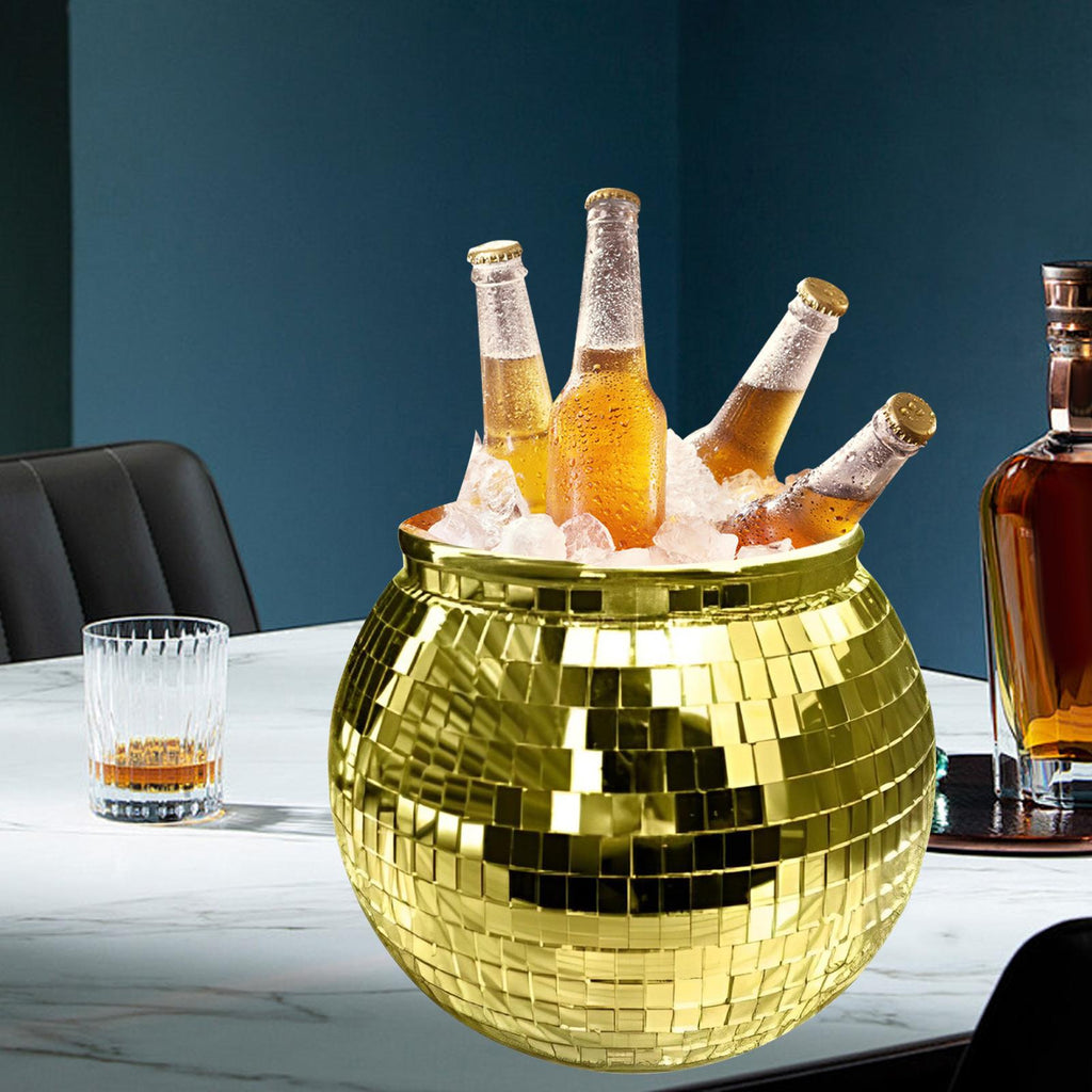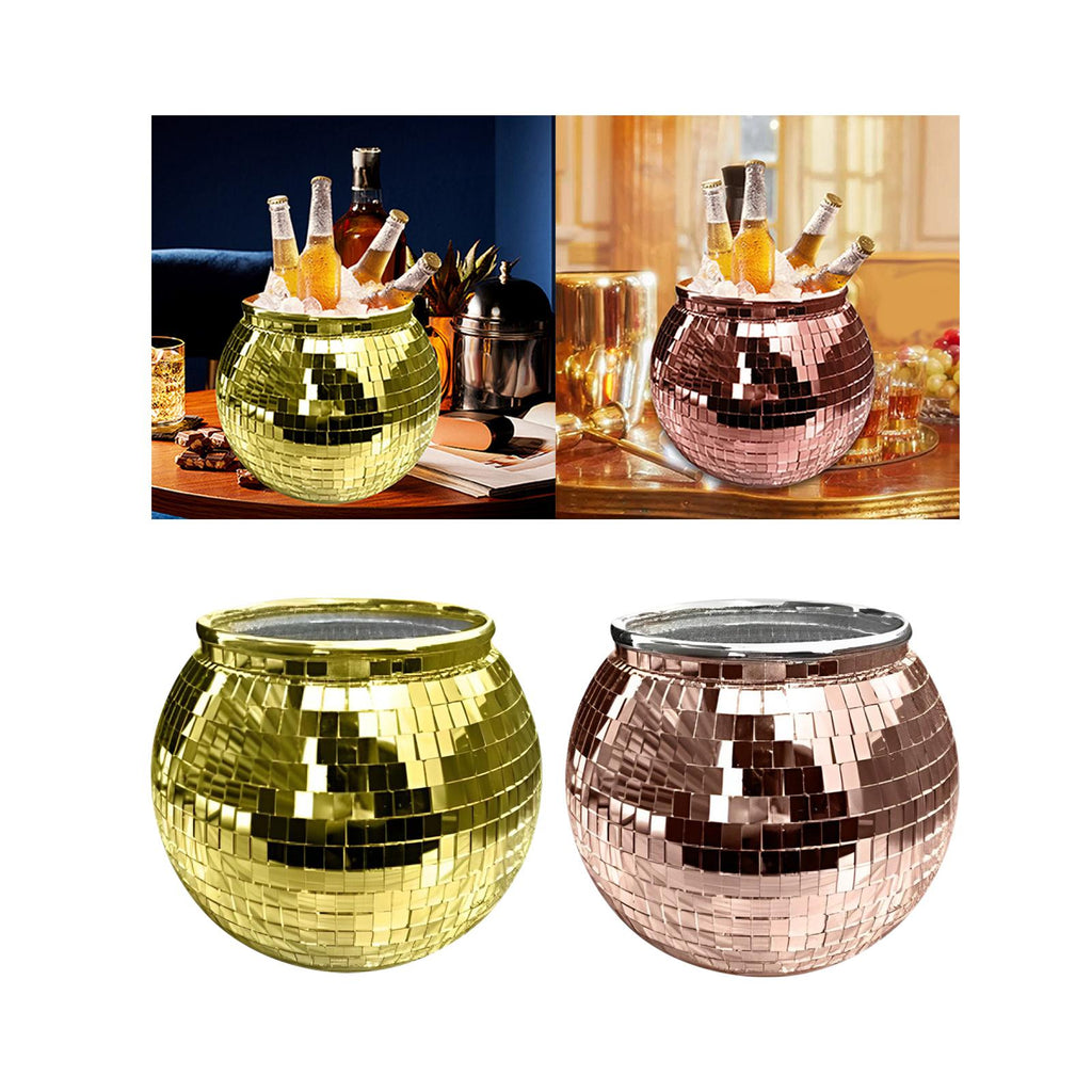 Maxbell Disco Ball Mirror Ice Bucket Keep Ice Cooling Longer Glass Drinkware for BBQ Gold