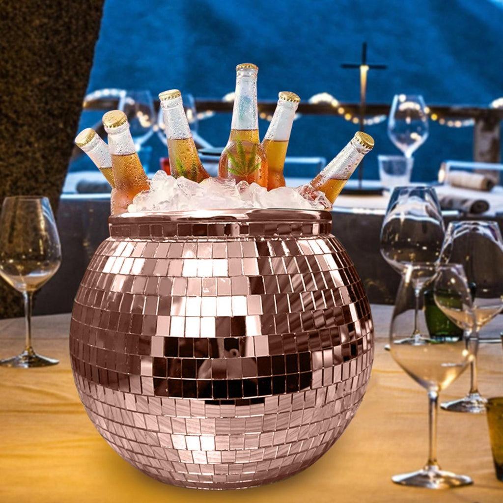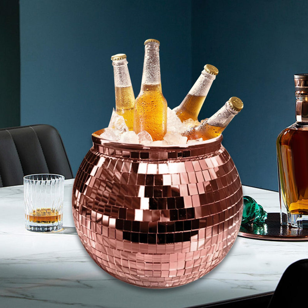 Maxbell Disco Ball Mirror Ice Bucket Keep Ice Cooling Longer Glass Drinkware for BBQ Rose Gold