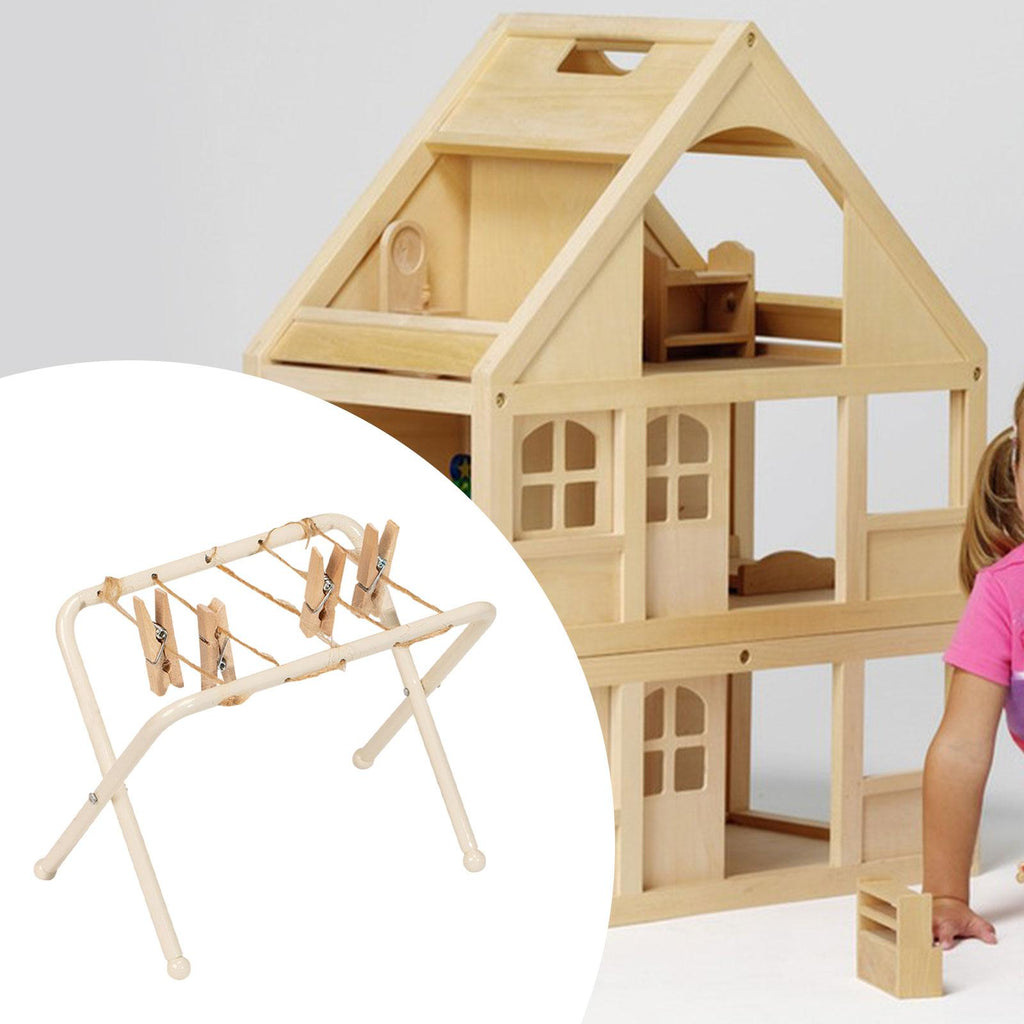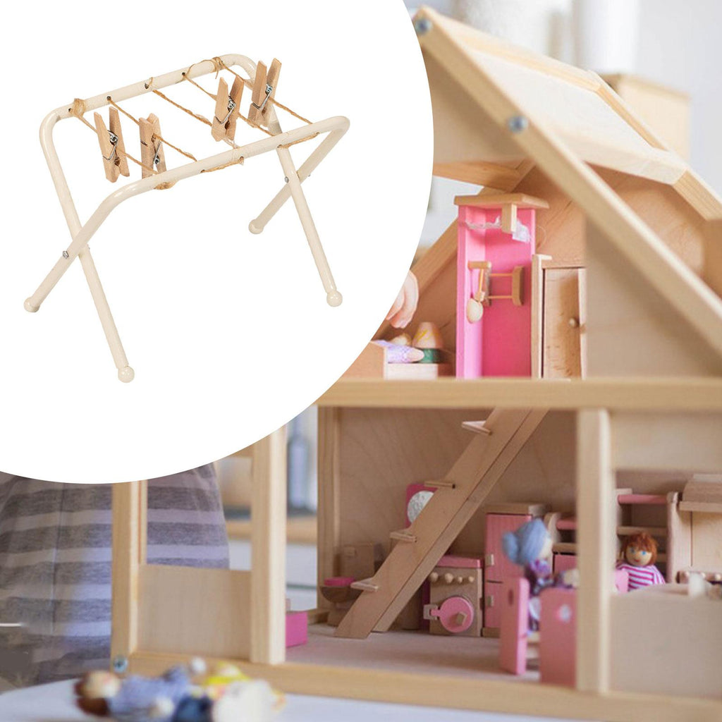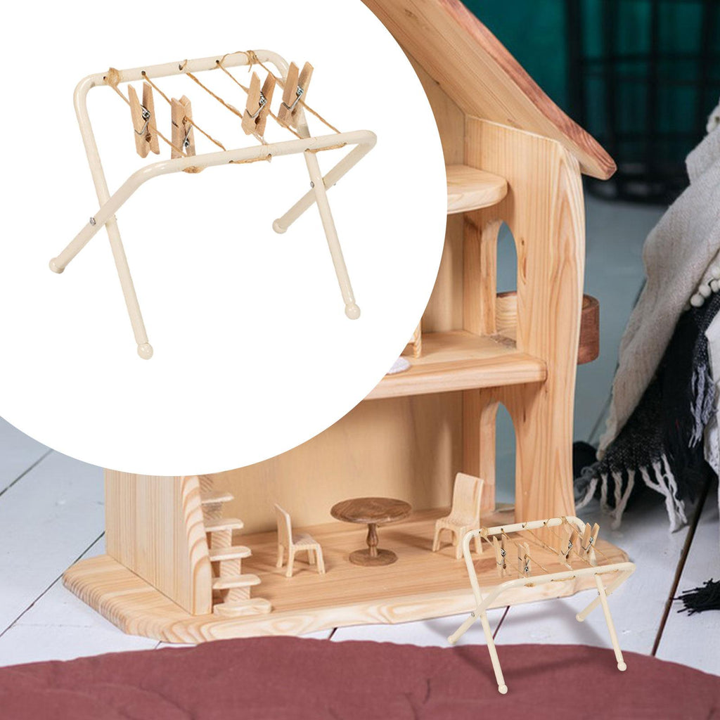 Maxbell Dollhouse Clothes Drying Rack Playset for Doll House Laundry Room Kids Gifts white