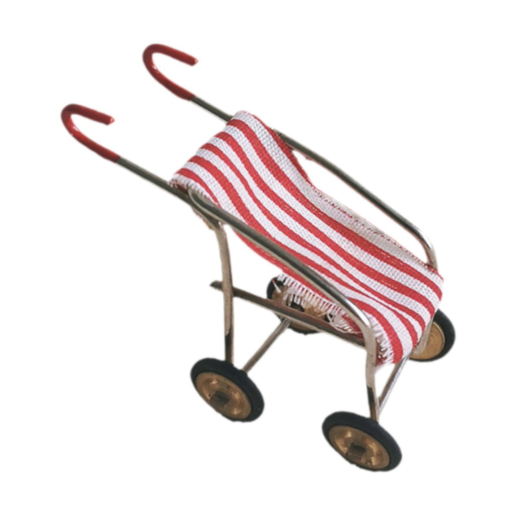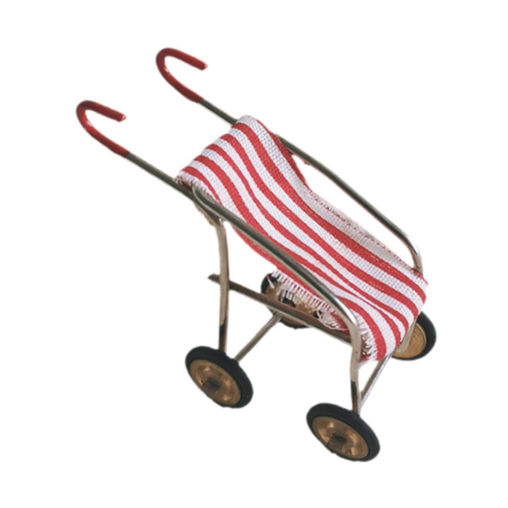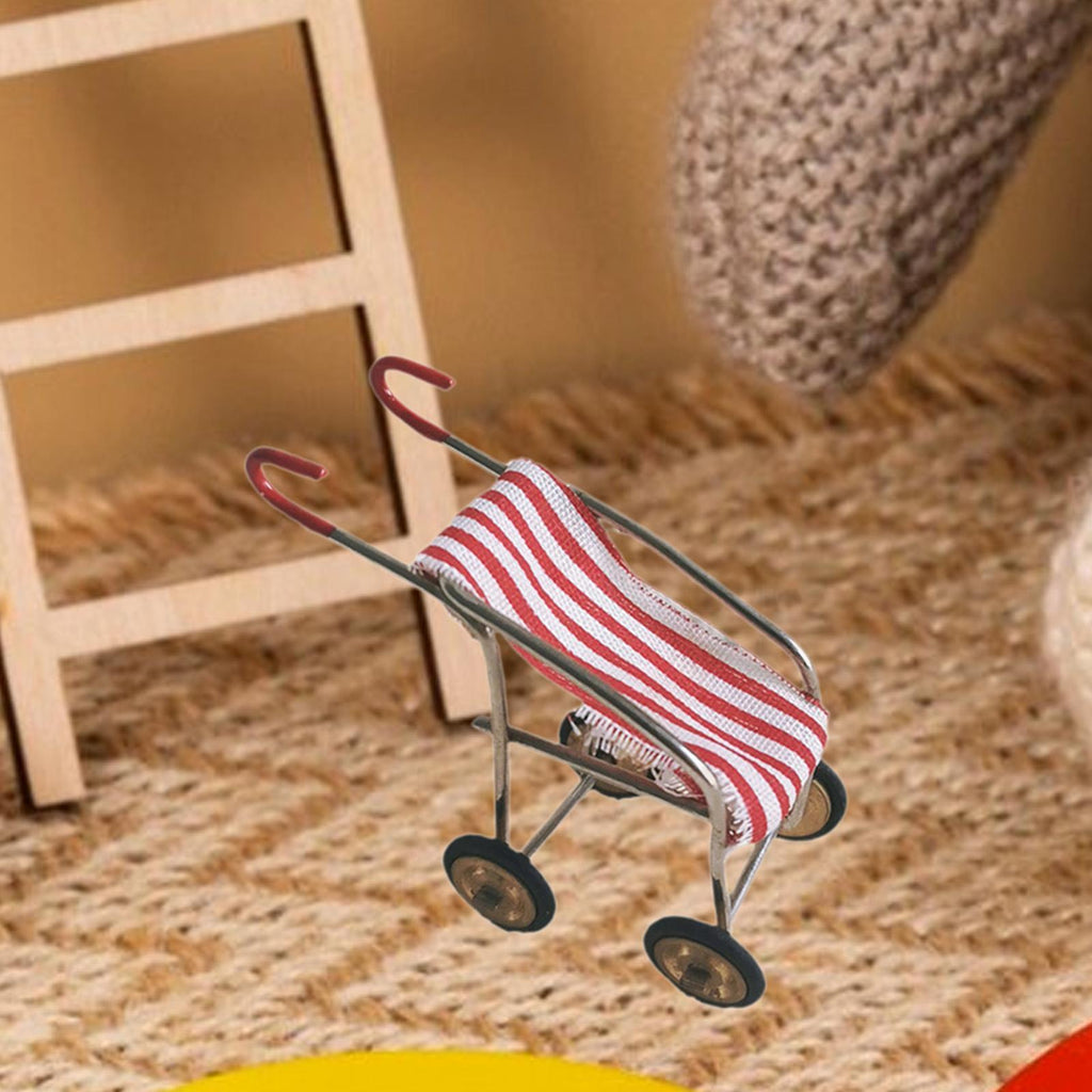 - 【Miniature Design】Realistically crafted metal and fabric miniature baby stroller model, great for enhancing dollhouse scenes with a touch of lifelike detail