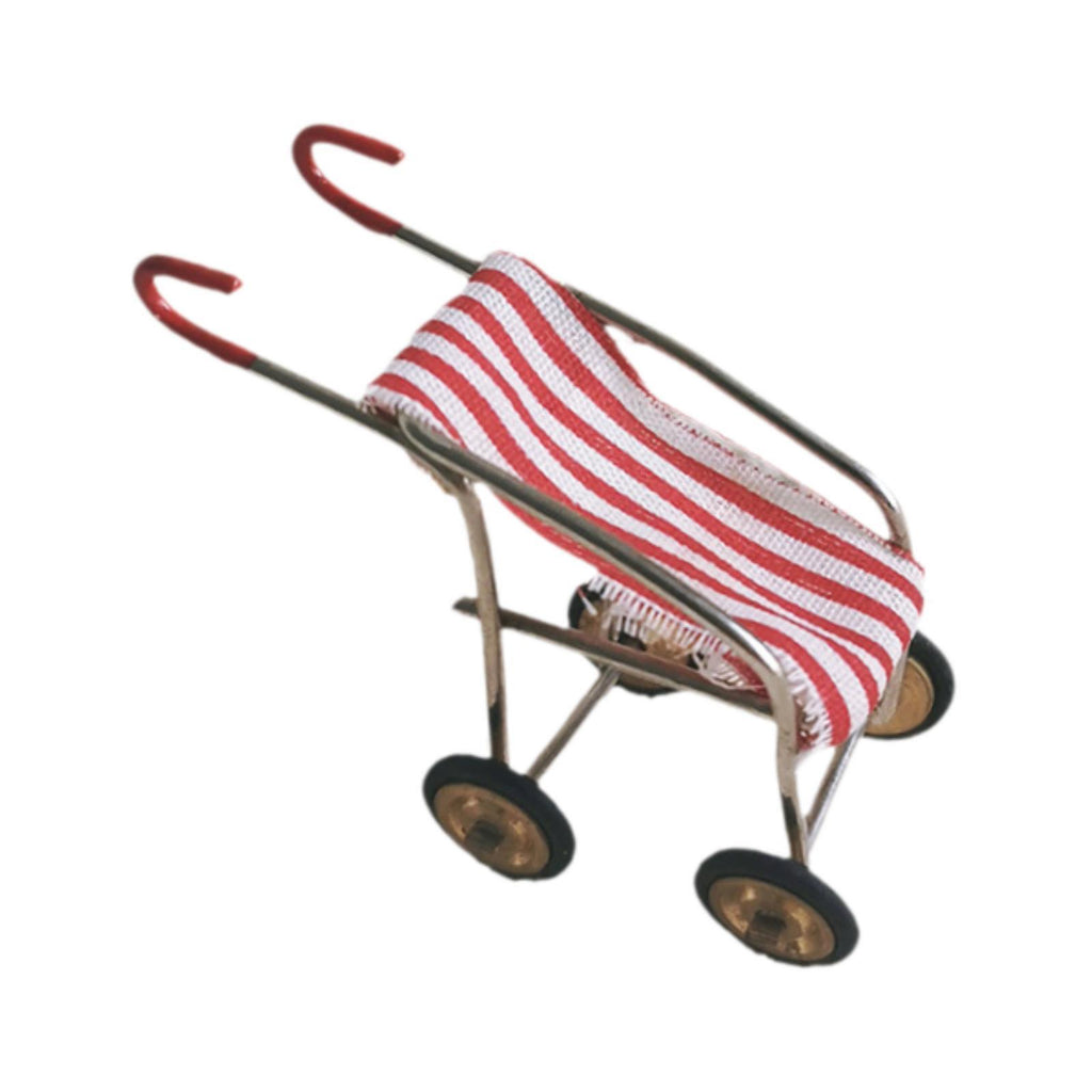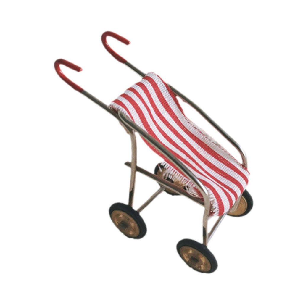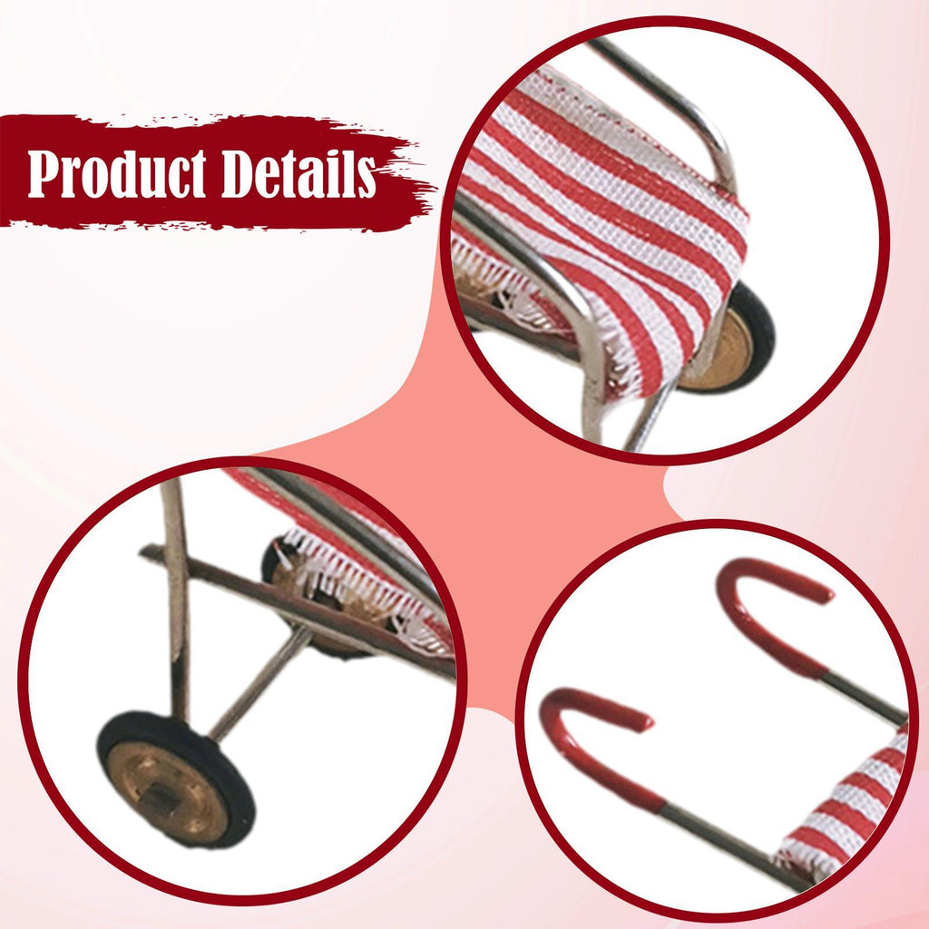 - 【Miniature Design】Realistically crafted metal and fabric miniature baby stroller model, great for enhancing dollhouse scenes with a touch of lifelike detail