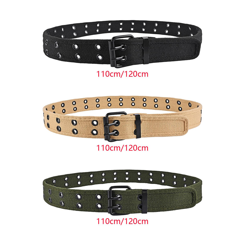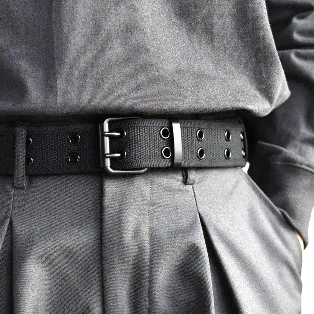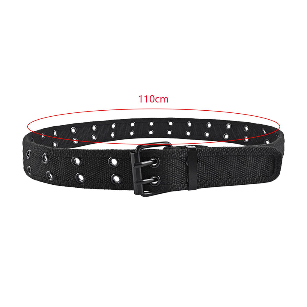 Maxbell Double Grommets Belt Aesthetic Casual Pin Buckle Belt Punk Belts Canvas Belt 110cm Black