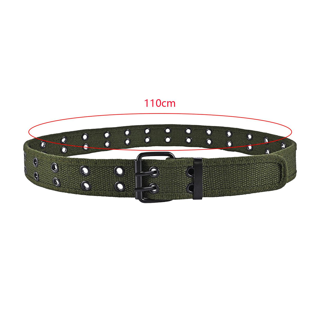 Maxbell Double Grommets Belt Aesthetic Casual Pin Buckle Belt Punk Belts Canvas Belt 110cm Green