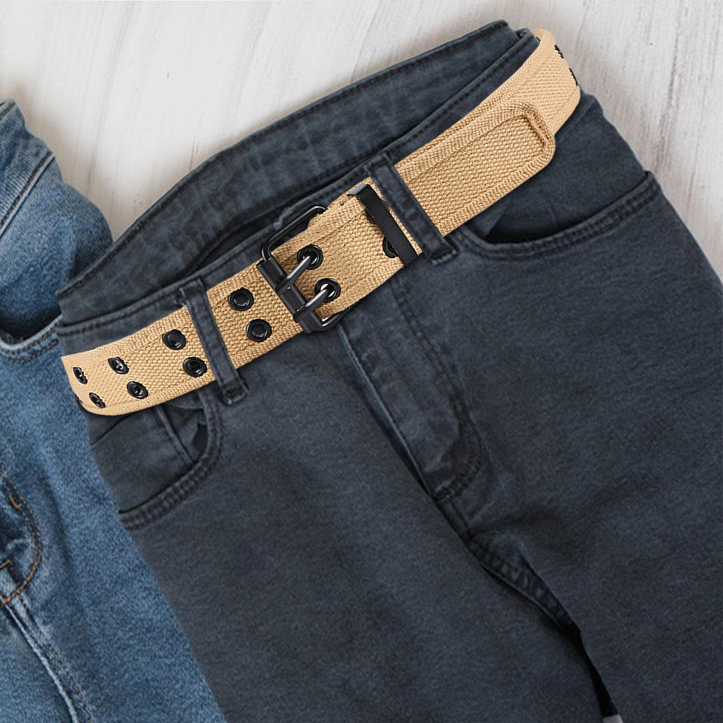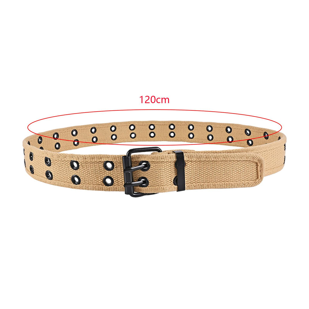 Maxbell Double Grommets Belt Aesthetic Casual Pin Buckle Belt Punk Belts Canvas Belt 120cm Khaki
