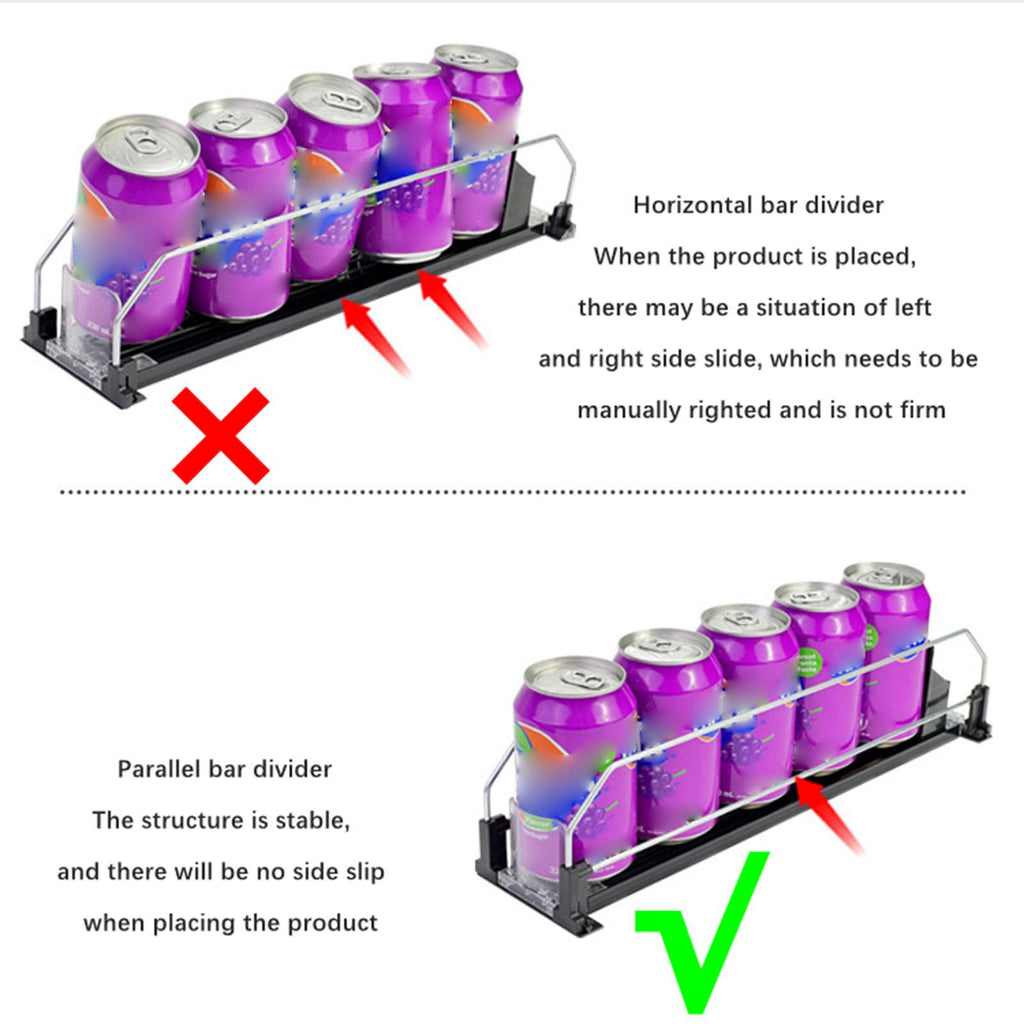 【Automatic Pusher Glide】: This feature ensures your beverage cans are always in the front position, saving space and providing orderly storage. No more digging around for your favorite drinks!