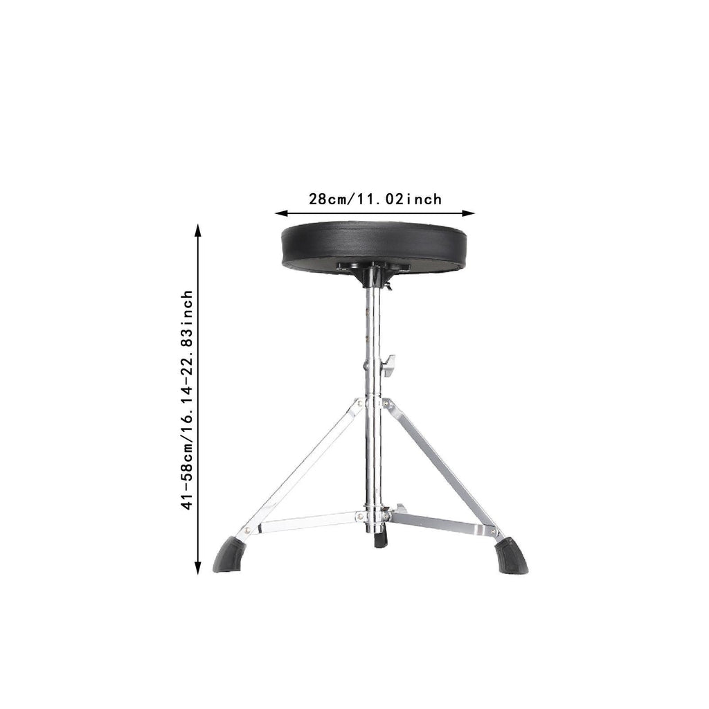 【Adjustable Height】: The drum throne offers adjustable height settings ranging from 16.14inch-22.83inch, accommodating various playing type and preferences. The seat measures 11.02inch, providing ample space for comfort