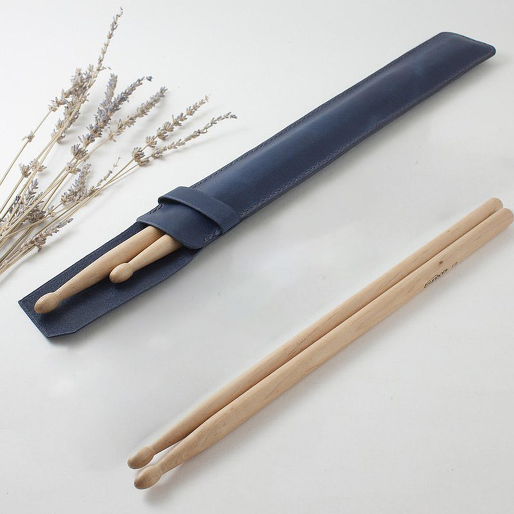 Maxbell Drumsticks Storage Bag Durable Carrying Case Portable Drumstick Leather Case Blue