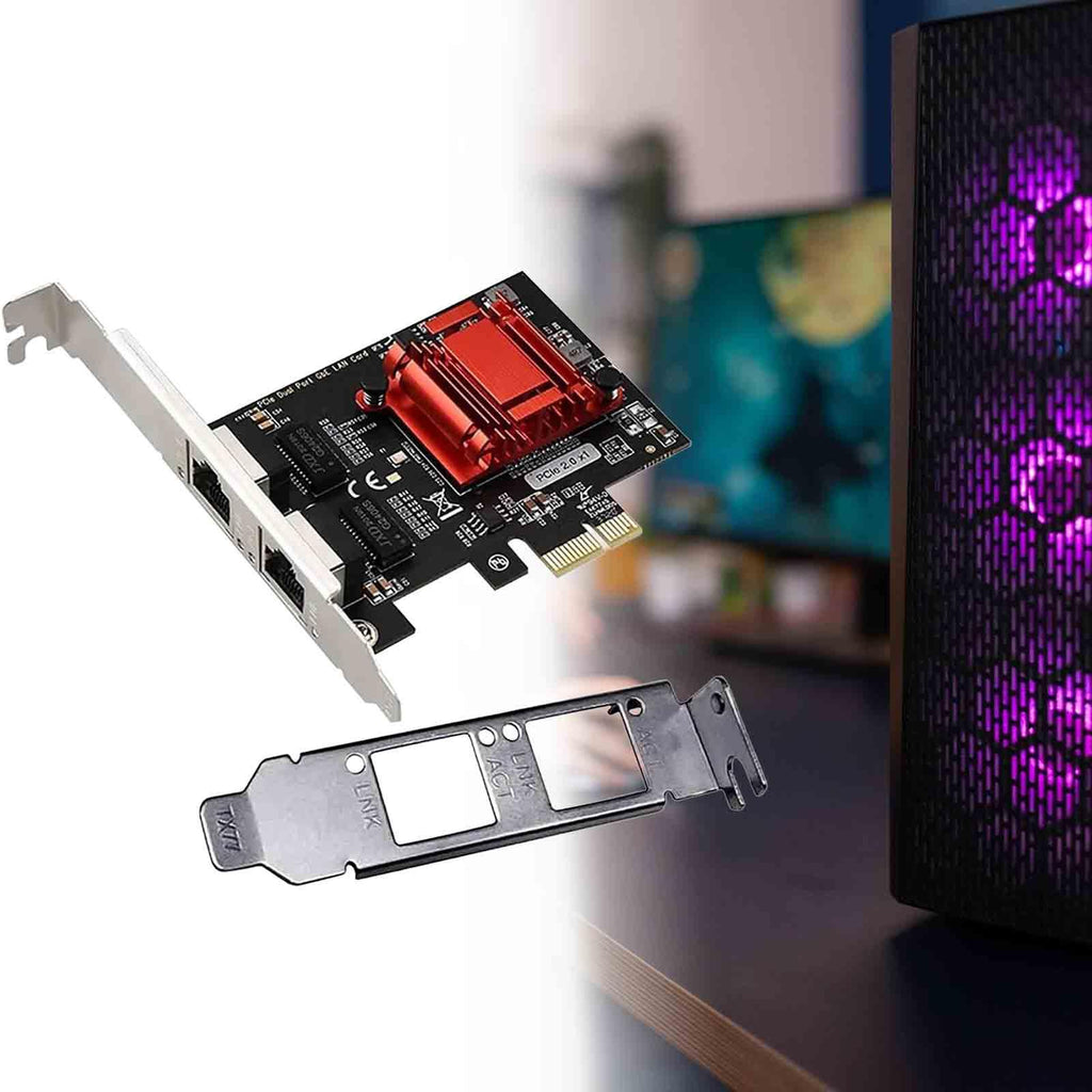 【Dual Gigabit Ports】: This Dual-Port PCIe Gigabit Network Card features 2 Gigabit Ethernet RJ 45 ports, powered by Intel 82575/82576 chipset. It is compatible 100M/10M auto-negotiation and supports standard Cat5e or above UTP, with a maximum transmission distance of up to 100 meters (328 feet).