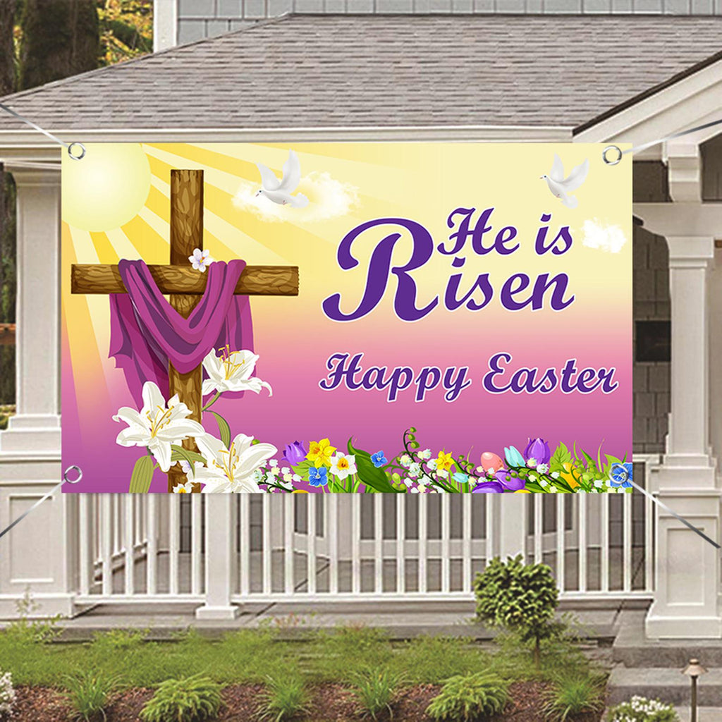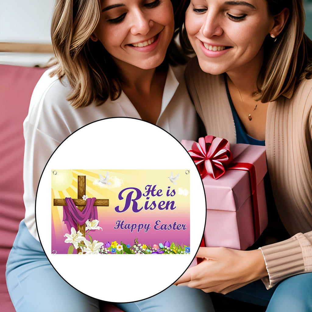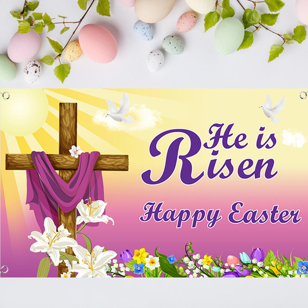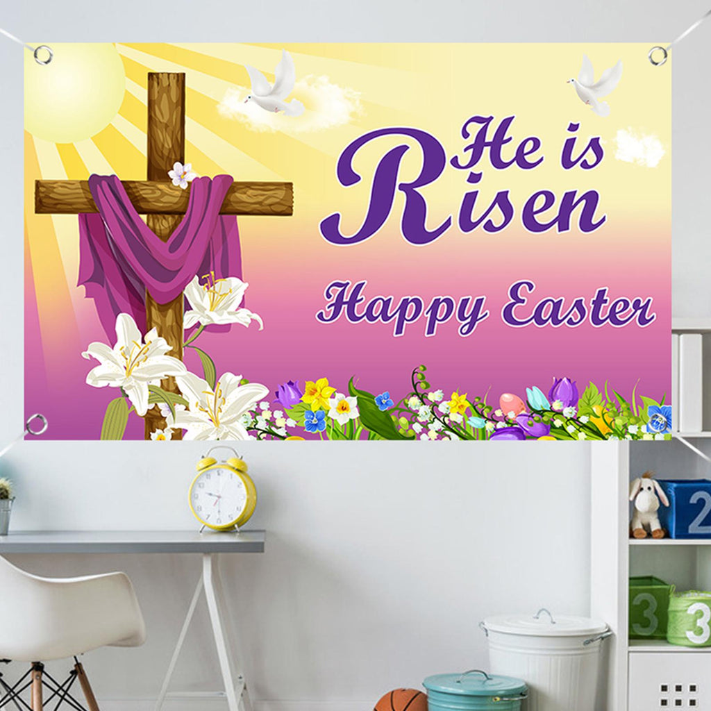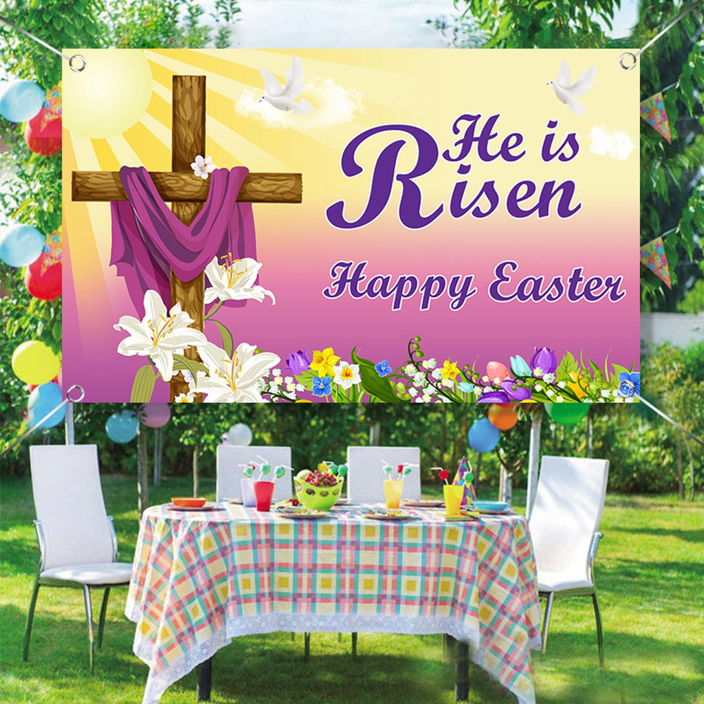 【Easter Decoration】: Colorful Easter photography backdrop, with the words “He is Risen", adds a strong Easter atmosphere, is a nice addition to Easter decoration.