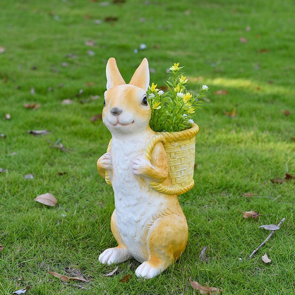 Maxbell Easter Bunny Statue Flowerpot Resin Outdoor Ornament for Courtyard Versatile Yellow