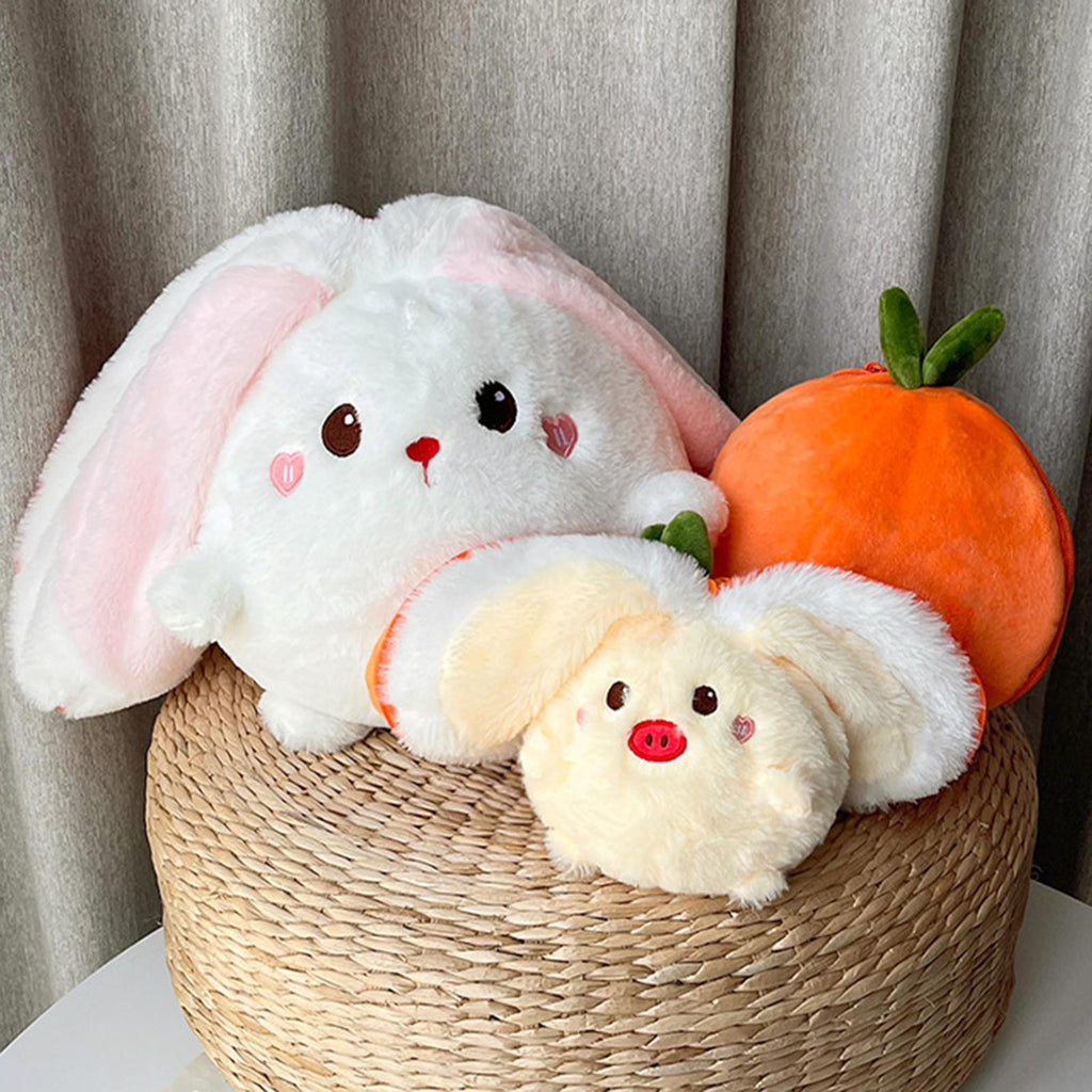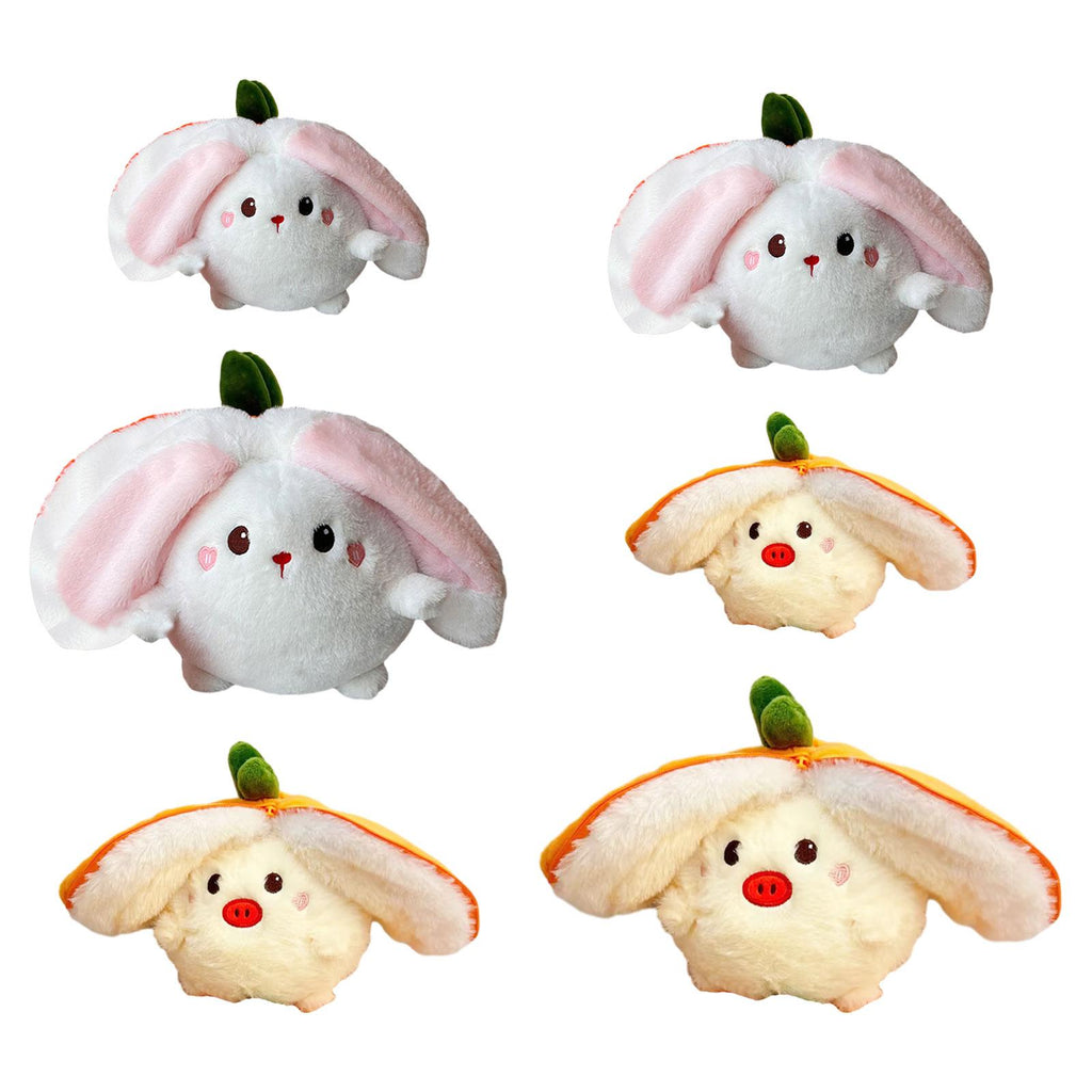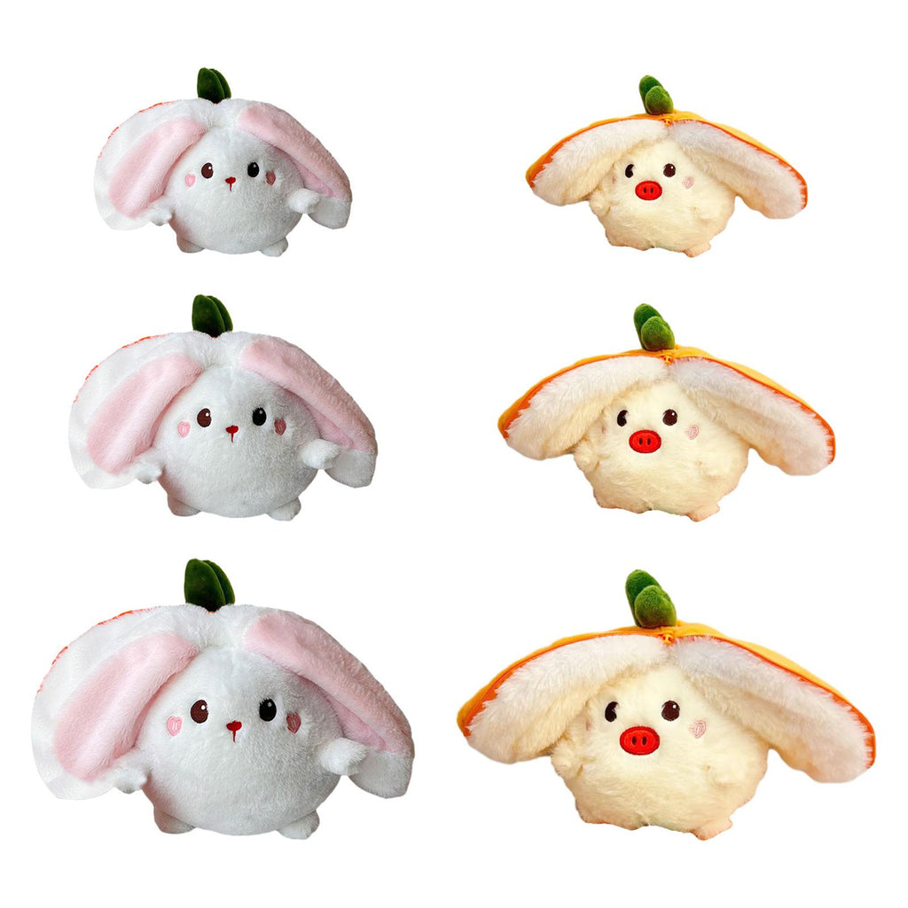 【Huggable plush toy】: The plush toy is designed with smooth plush, very soft and cuddly, the bunny/piggy hides in its ears, looks like a bean, its short limbs and body make him Extra cute.