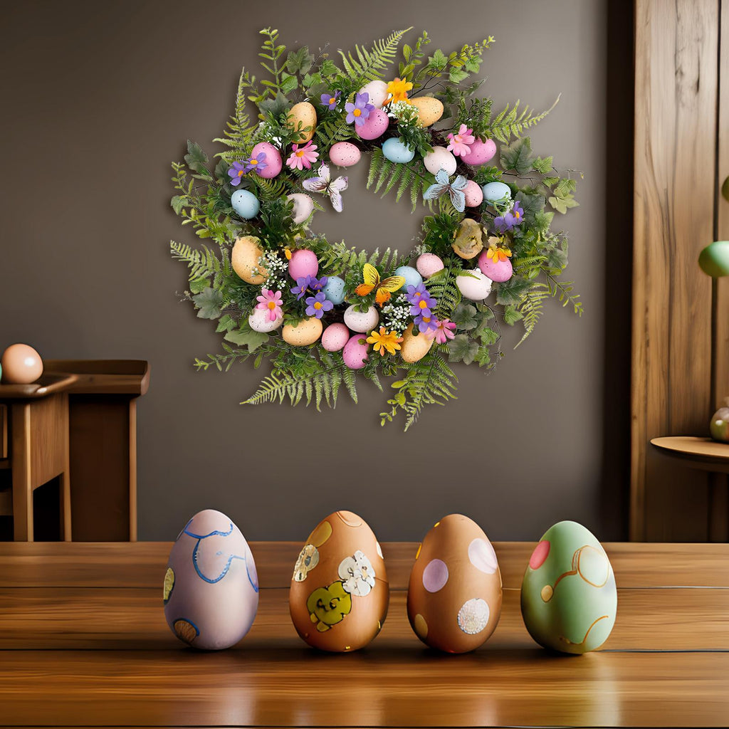 Maxbell Easter Egg Flower Wreath Easter Door Garland for Front Door Patio Porch Home