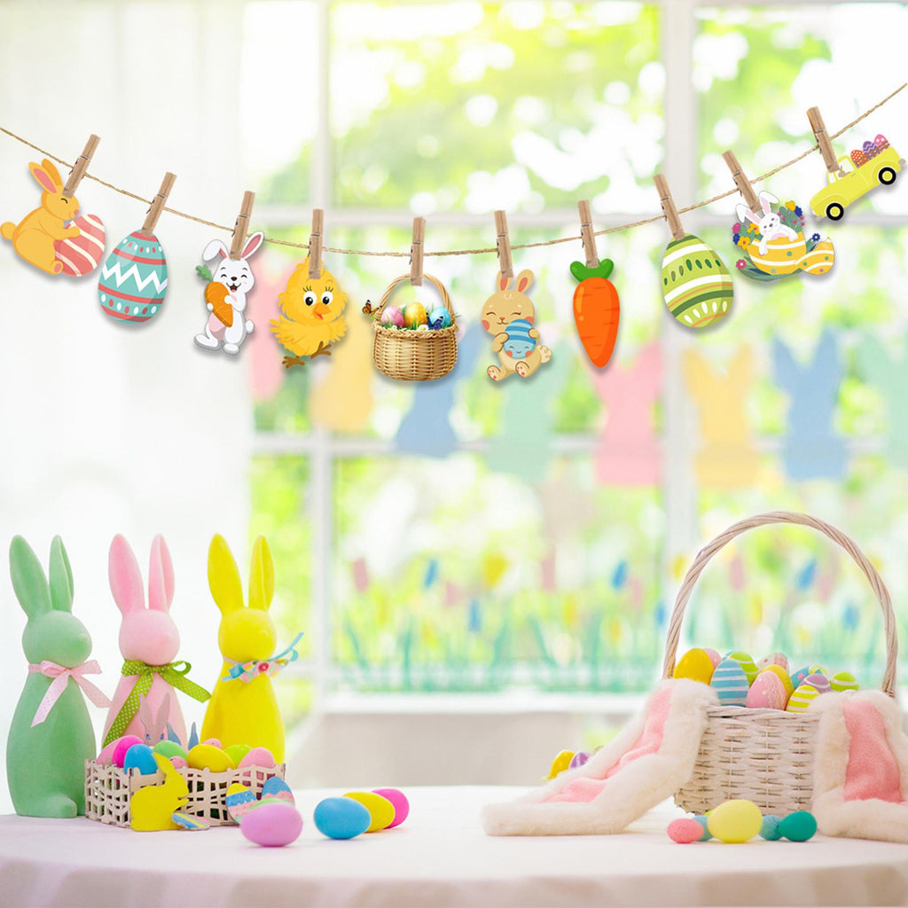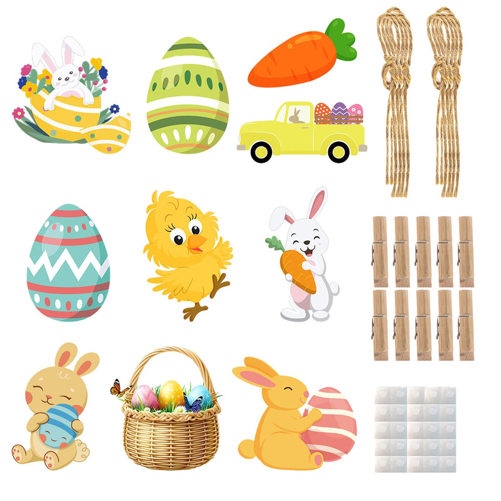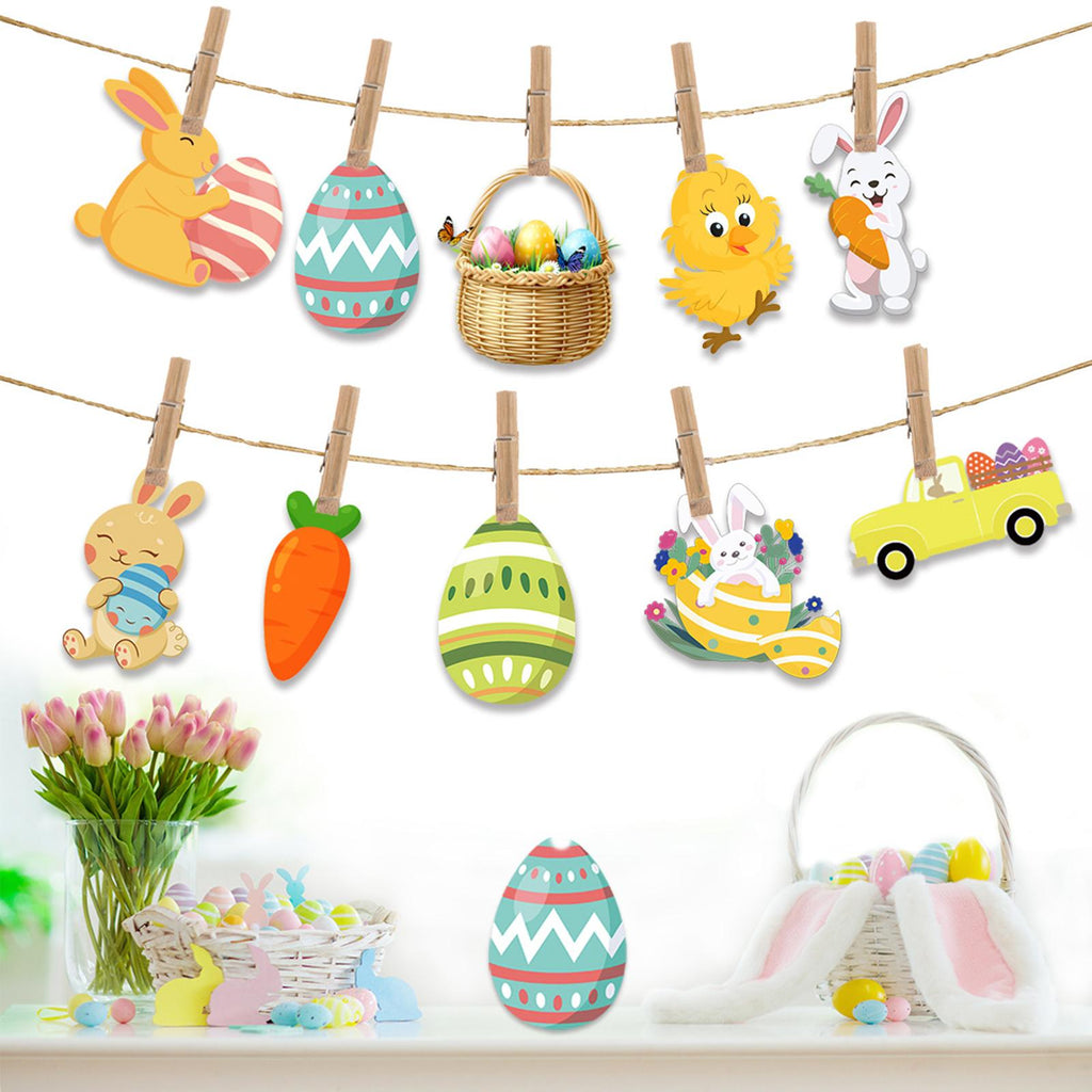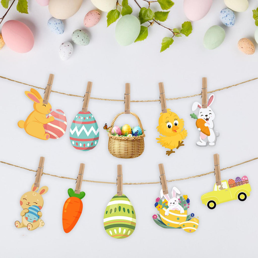 【Package Including】: You will get 10 Easter hanging ornaments, 2 sheets of dot glues, 10 clips and 3m hemp rope.