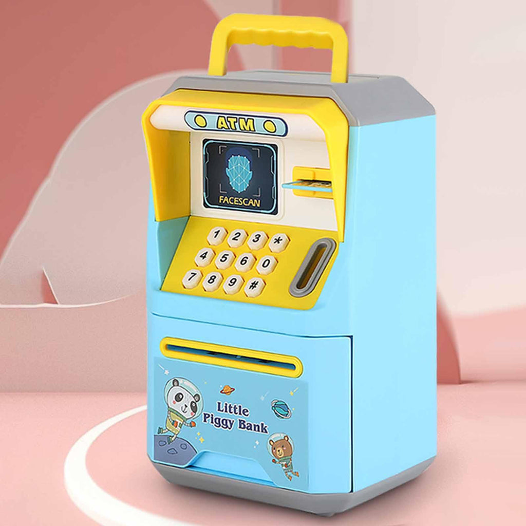 Maxbell Electronic Fingerprint ATM Piggy Bank Password ATM Machine for Children Kids Blue