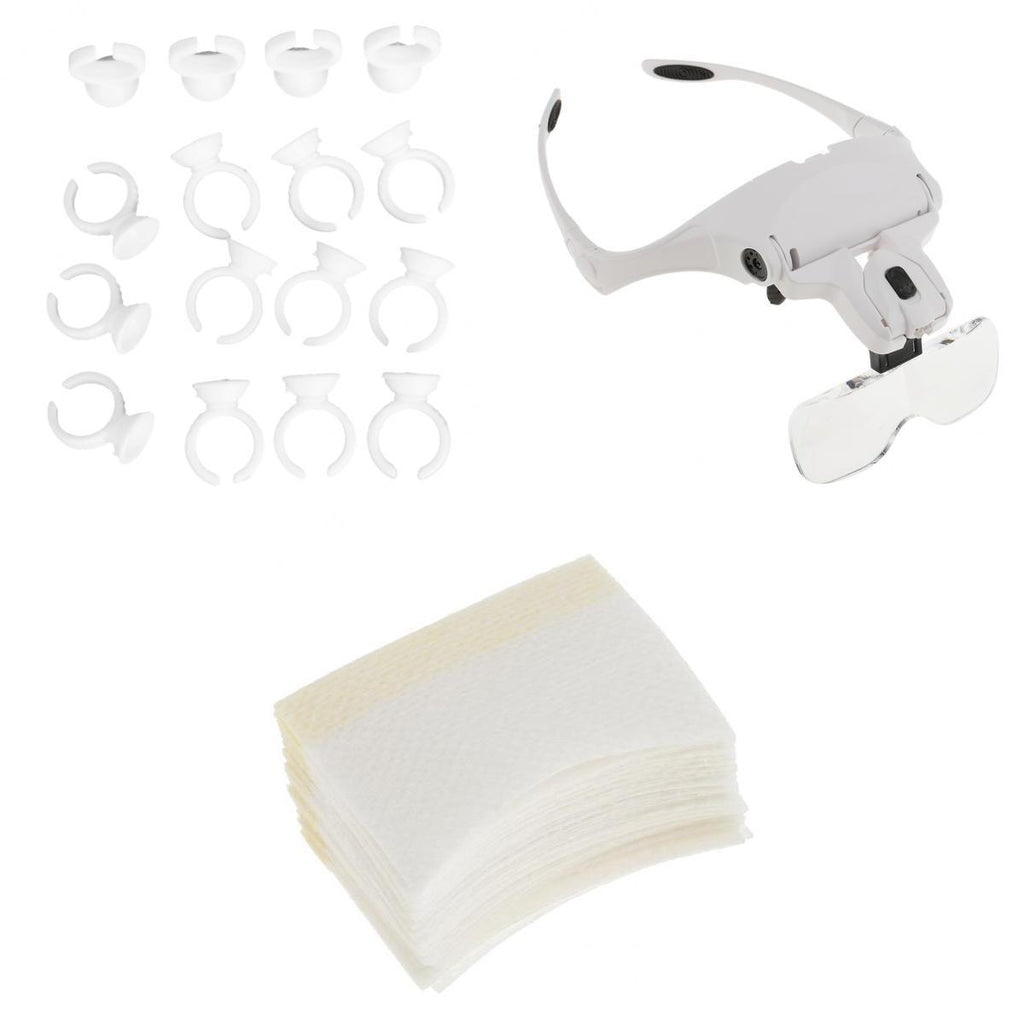 Maxbell Eyelash Extension Head Magnifier + 20Pair Eye Pad + 100piece Glue Holder Cup