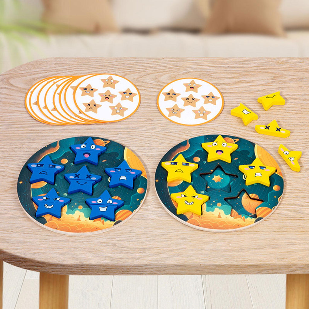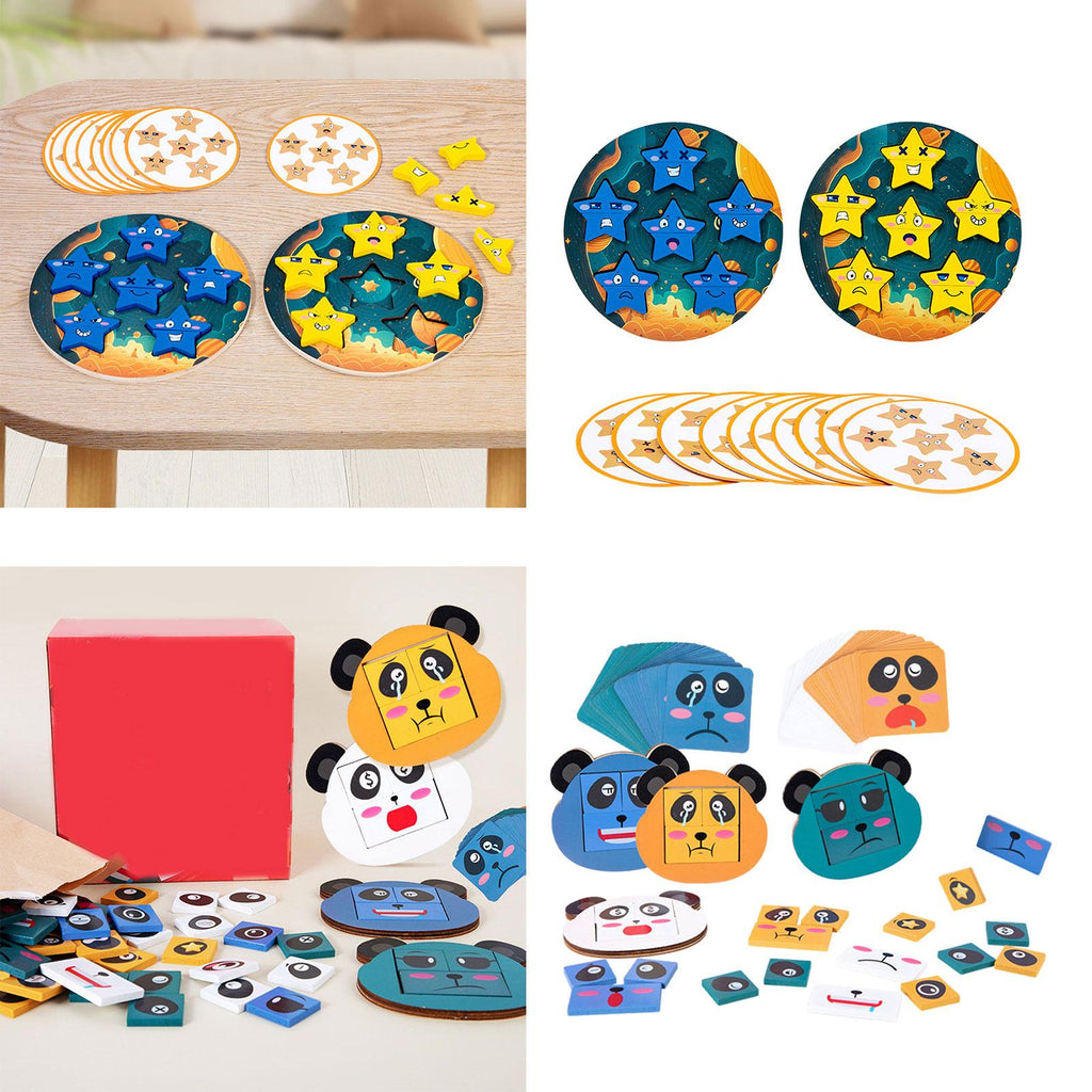 【Montessori Toys】: Expressions matching block puzzles, suitable for children and adults to play and enhance parent child relationship.