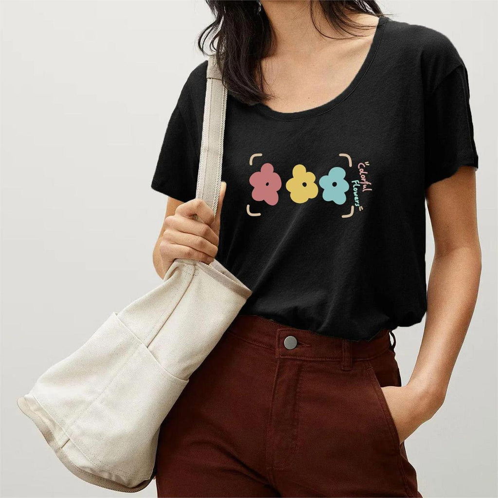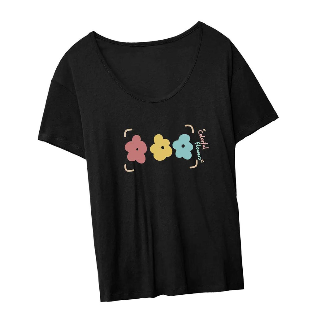 【Fashion Tee】Women Flower Printed T Shirt is with novelty design, round neck, creative, fashionable and versatile.