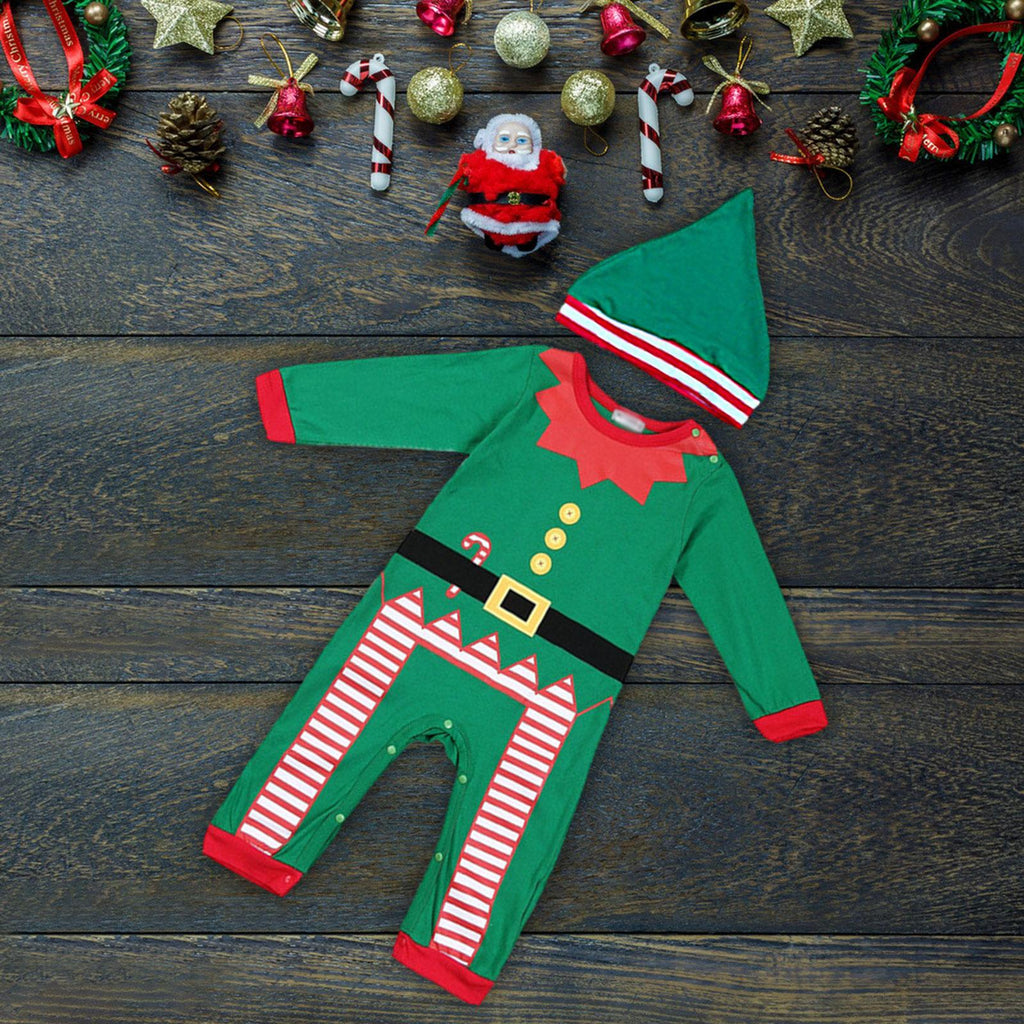 Maxbell First Christmas Baby Outfit Boy Girl with Hat Long Sleeve Newborn Clothes 90 Green