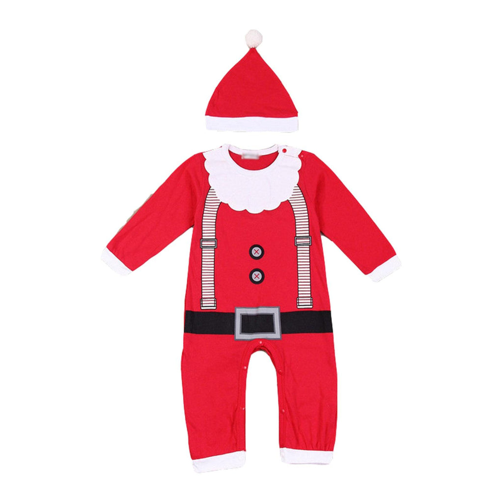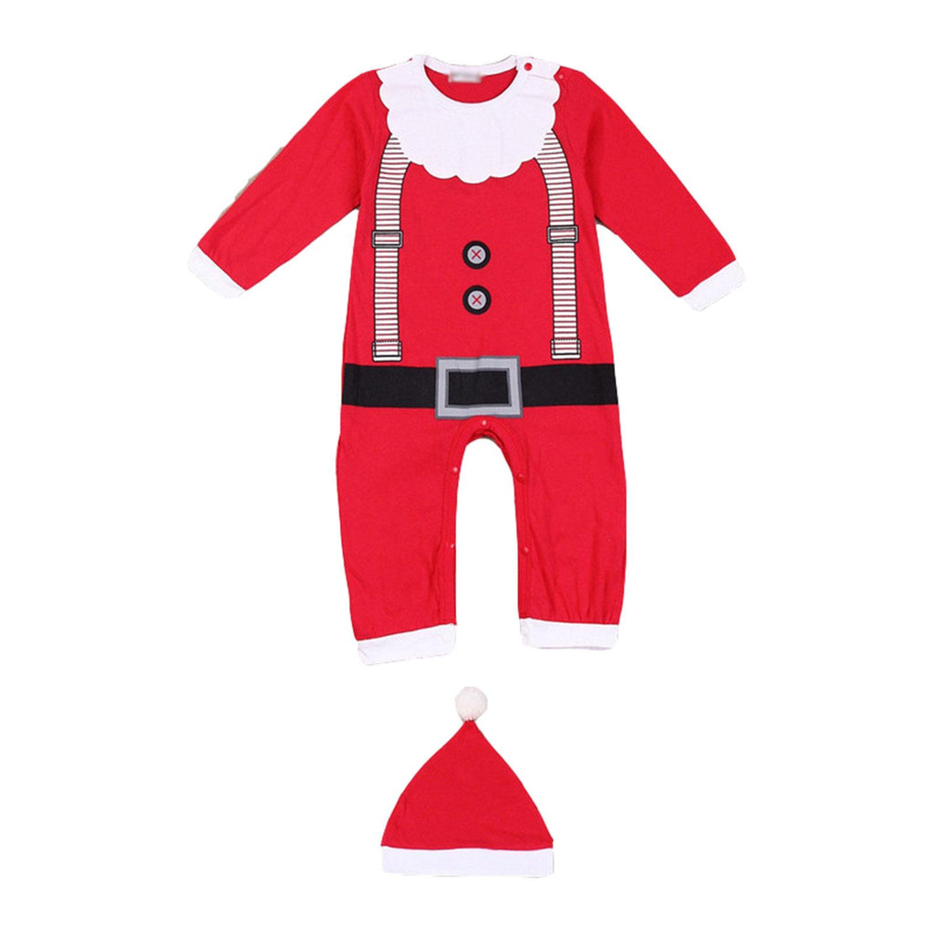 Maxbell First Christmas Baby Outfit Boy Girl with Hat Long Sleeve Newborn Clothes Red 80