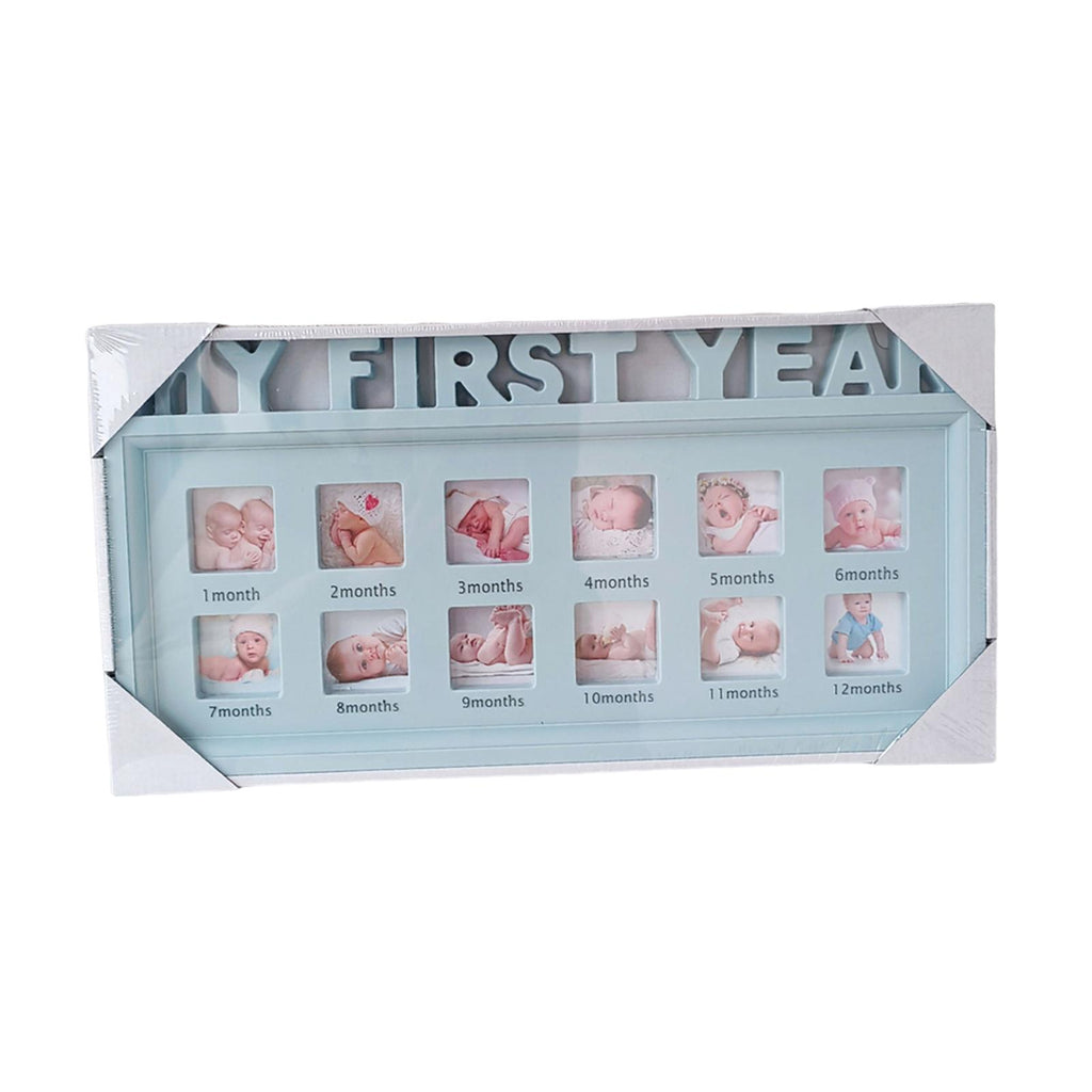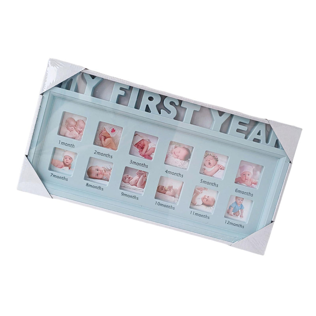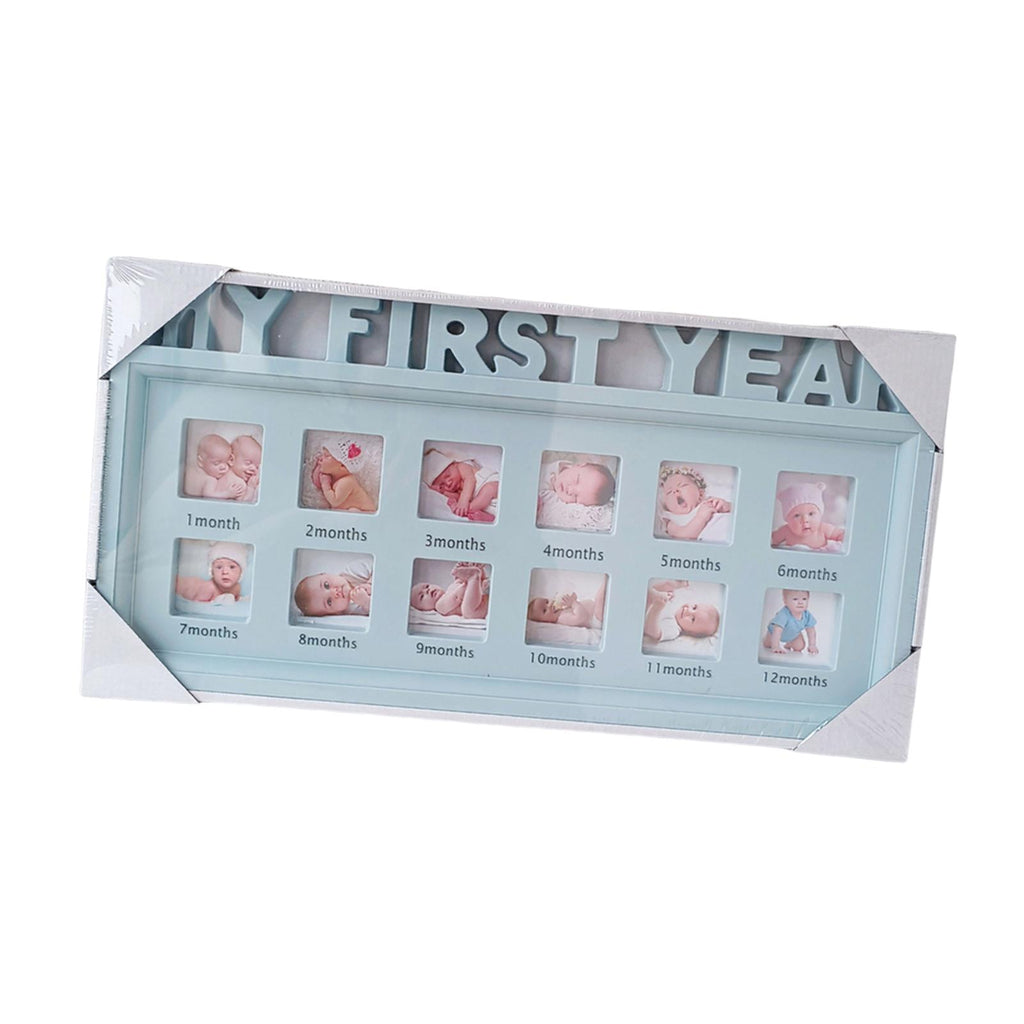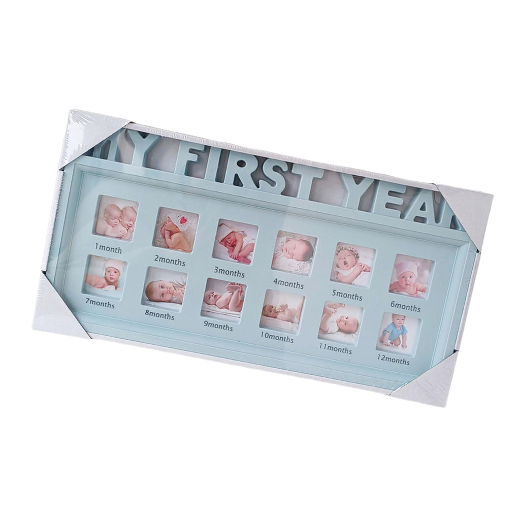 Maxbell First Year Picture Frame Display Baby Keepsake Frame for Christening Gift Blue