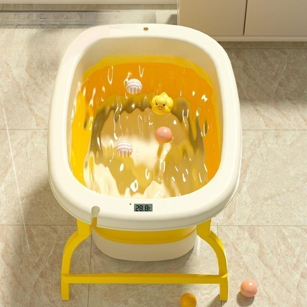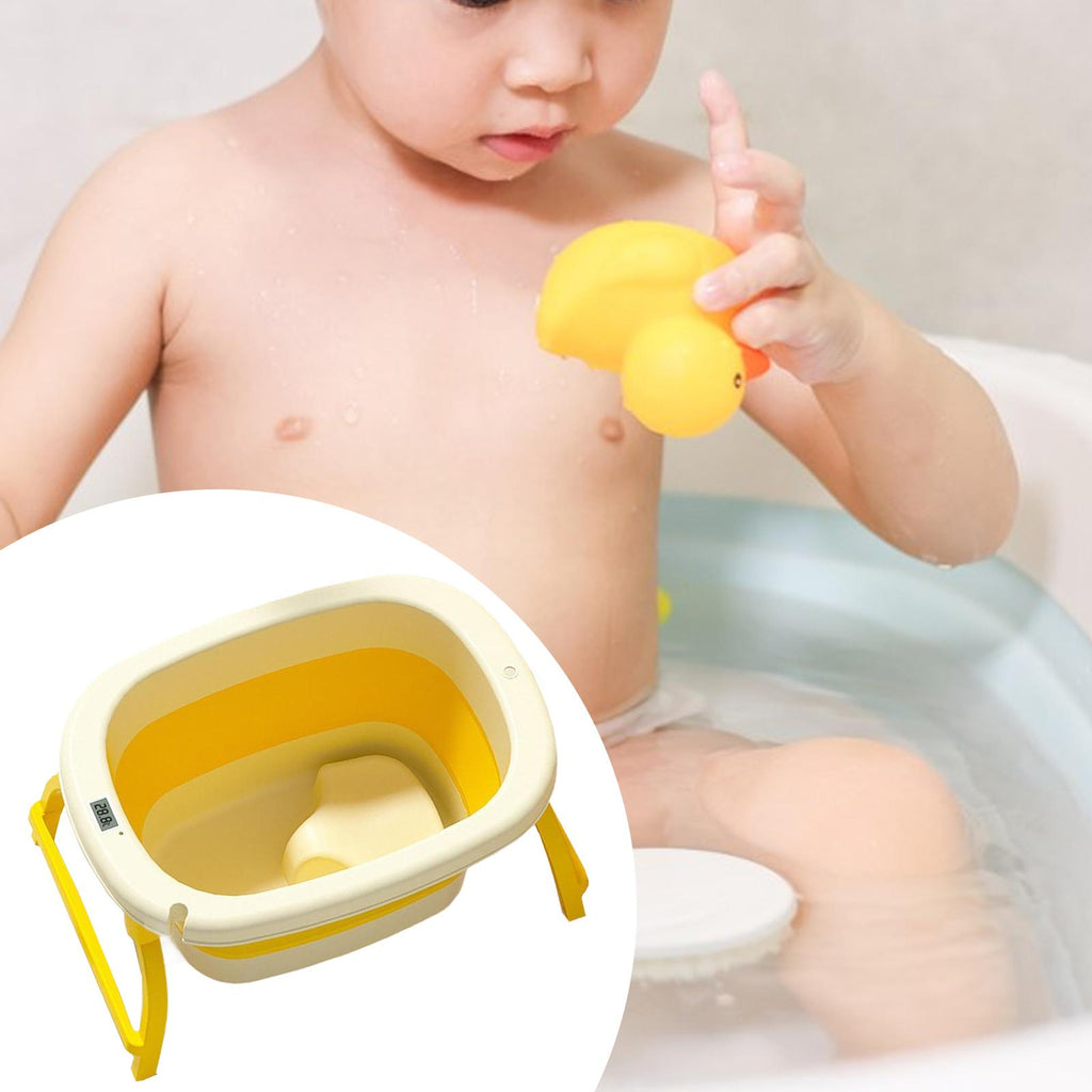 【Intelligent Temperature Sensing Foldable Tub】: The intelligent temperature sensing feature constantly monitors the water temperature to ensure a comfortable bath for your baby, preventing any risk of scalding or catching cold