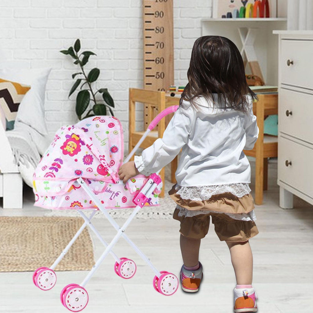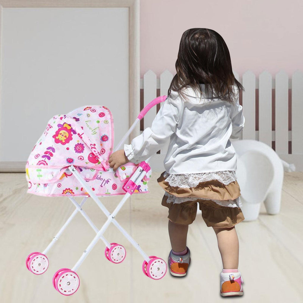 Maxbell Foldable Baby Doll Stroller for Dolls Miniature Push Cart Toy for Girls Boys Pink