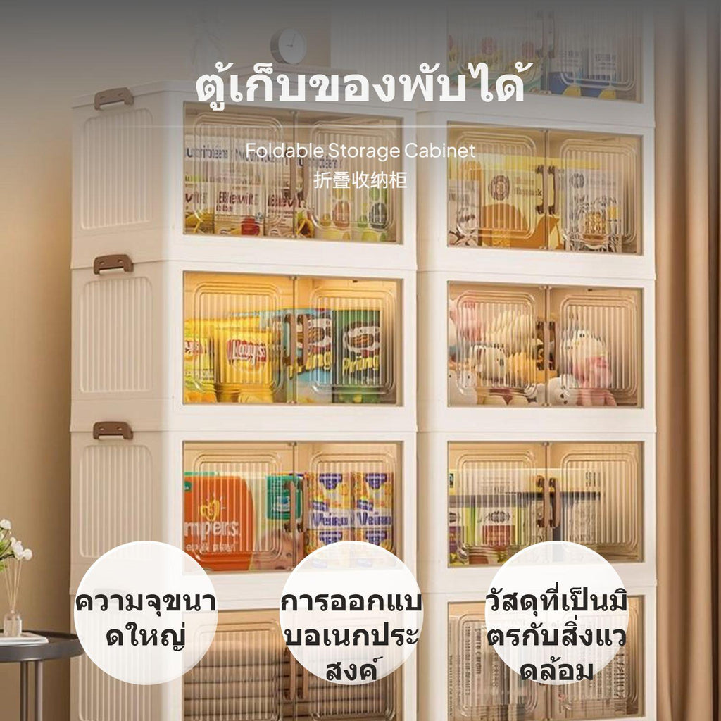[adaptable and Space-Saving] This foldable storage cabinet offers an innovative design with stackable layers for storing clothes, toys, snacks, and more, making it perfect for bedrooms, living rooms, and kid's rooms.[sturdy and environmentally-conscious] Made from thickened PP material, this cabinet is strong, health-conscious, and without harmful substances from harmful substances, ensuring secure-use for your household needs.[Convenient Foldable Design] The folding design allows for tooltool-less assembly and easy collapsing for storage, providing utmost convenience while saving space when not in use.[double Door choices] Available with transparent panels for easier item visibility or ivory panels for added privacy, catering to different preferences and needs.[effortless Mobility] Equipped with universal casters on the bottom (excluding singletier design style), allowing easy movement and flexibility across various spaces in your home.