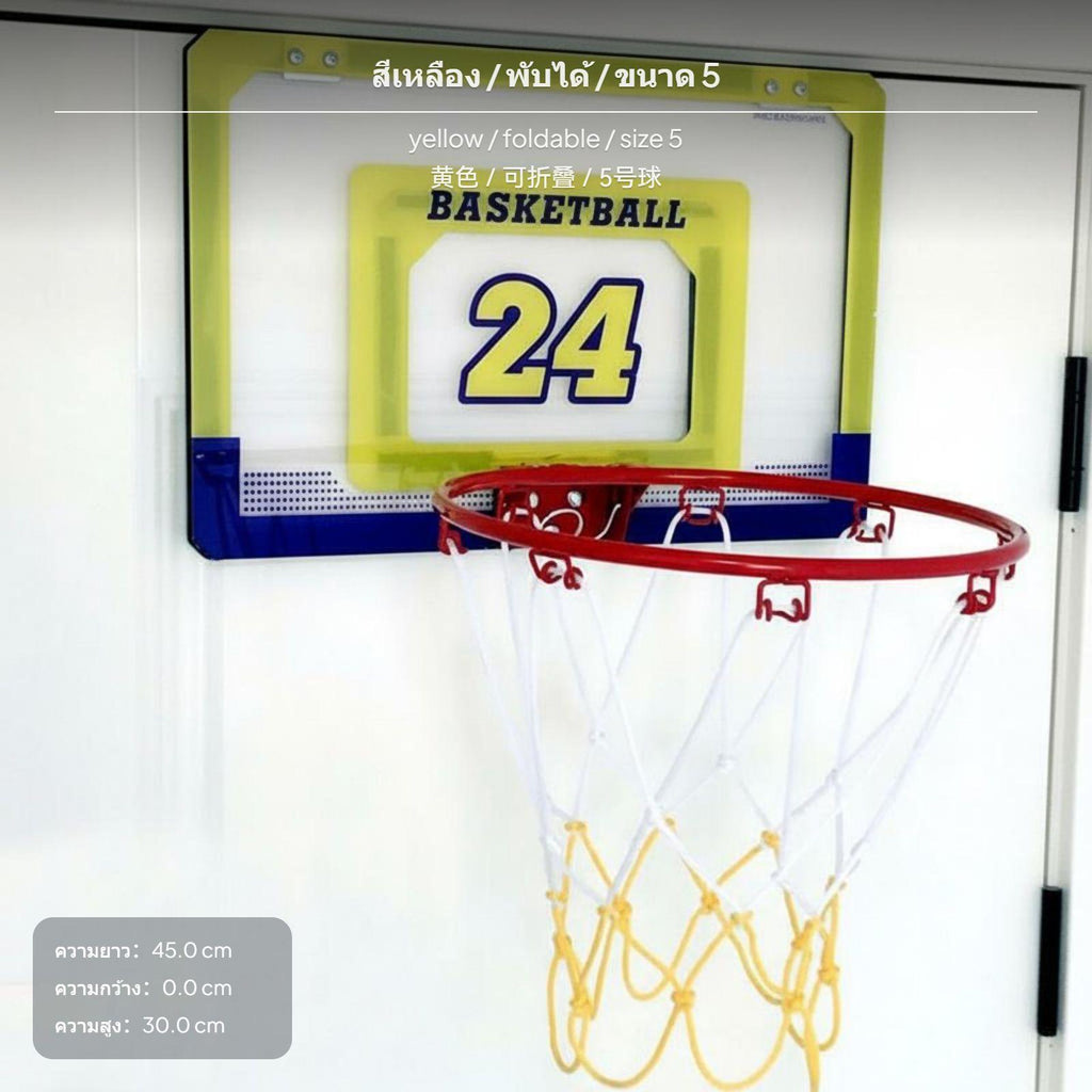 [Versatile No-Drill Installation] This kids basketball hoop features easy no-drill setup with iron hooks and adhesive hooks, suitable for doors, walls, or fences, saving space and allowing flexible placement.[Foldable & Space-Saving] Select models offer a foldable rim for convenient storage and portability, making it ideal for both indoor and outdoor play at home.[Durable Materials & Safe Play] Made from sturdy PC or PE backboards, metal rim, and polyester net, this hoop ensures lasting durability and reliable bounce for daily practice and fun.[Dunk-Ready for Active Fun] Most styles support dunking, encouraging kids to enjoy basketball and physical activity (do not hang on the rim).[Multiple Sizes & Random Styles] Available in various sizes and designs, some SKUs include a soft ball; certain styles are shipped randomly to suit different age groups.Specification: