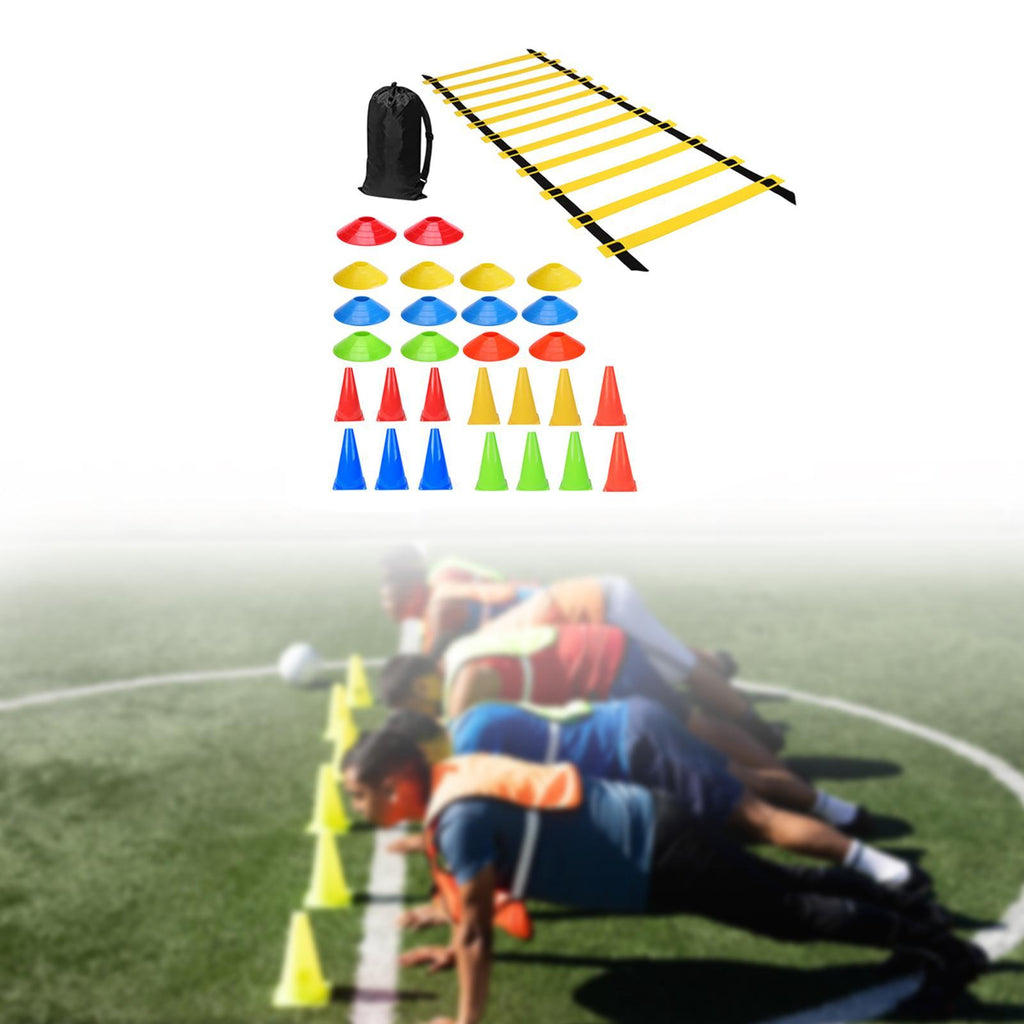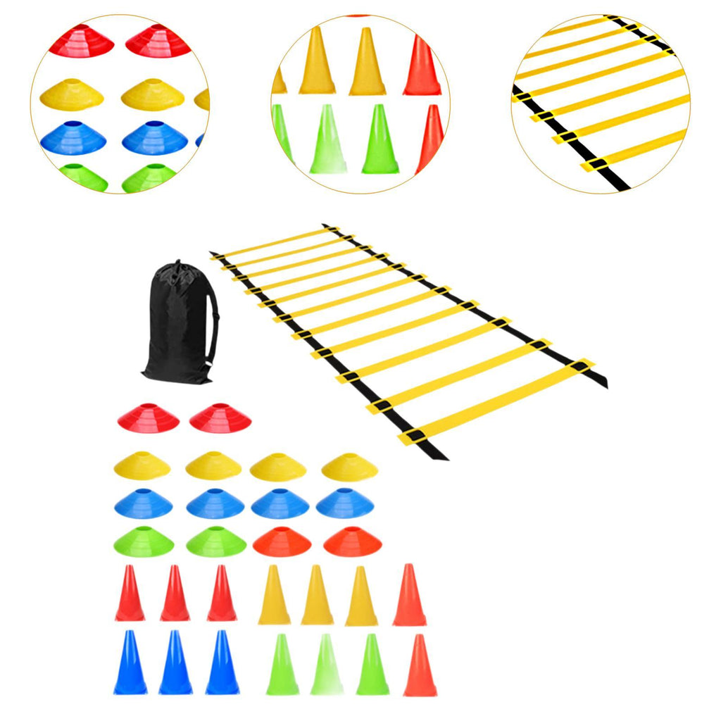 1 Agility Ladder 14 Cones 14 Disc Cones 1 Carry Bag