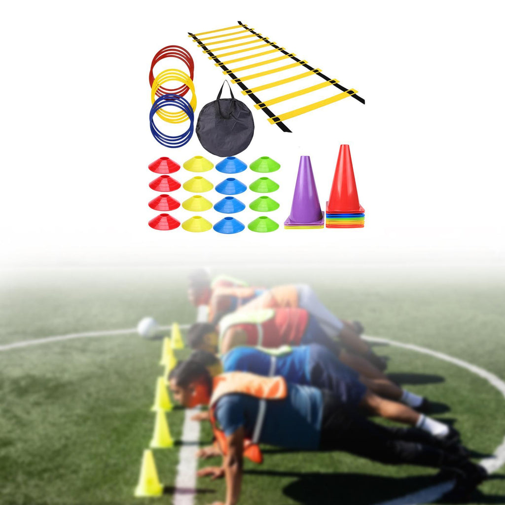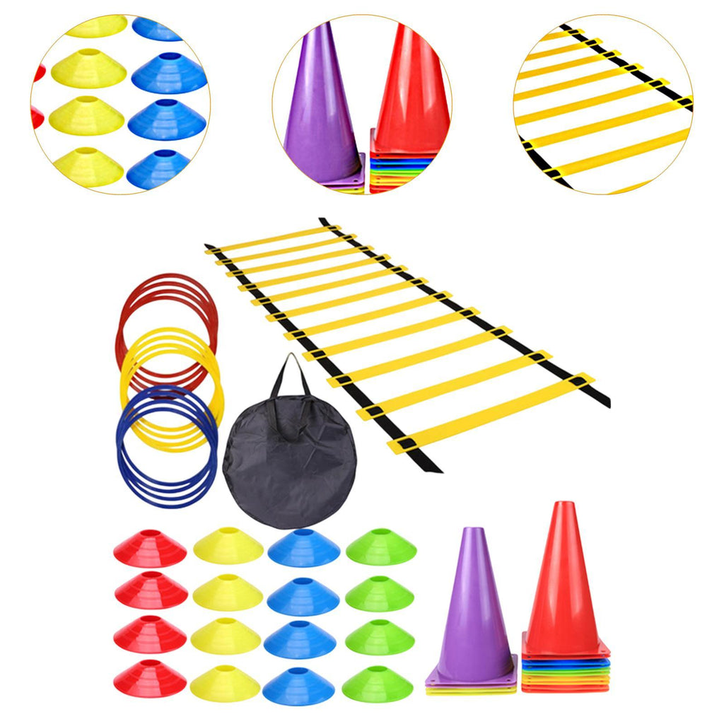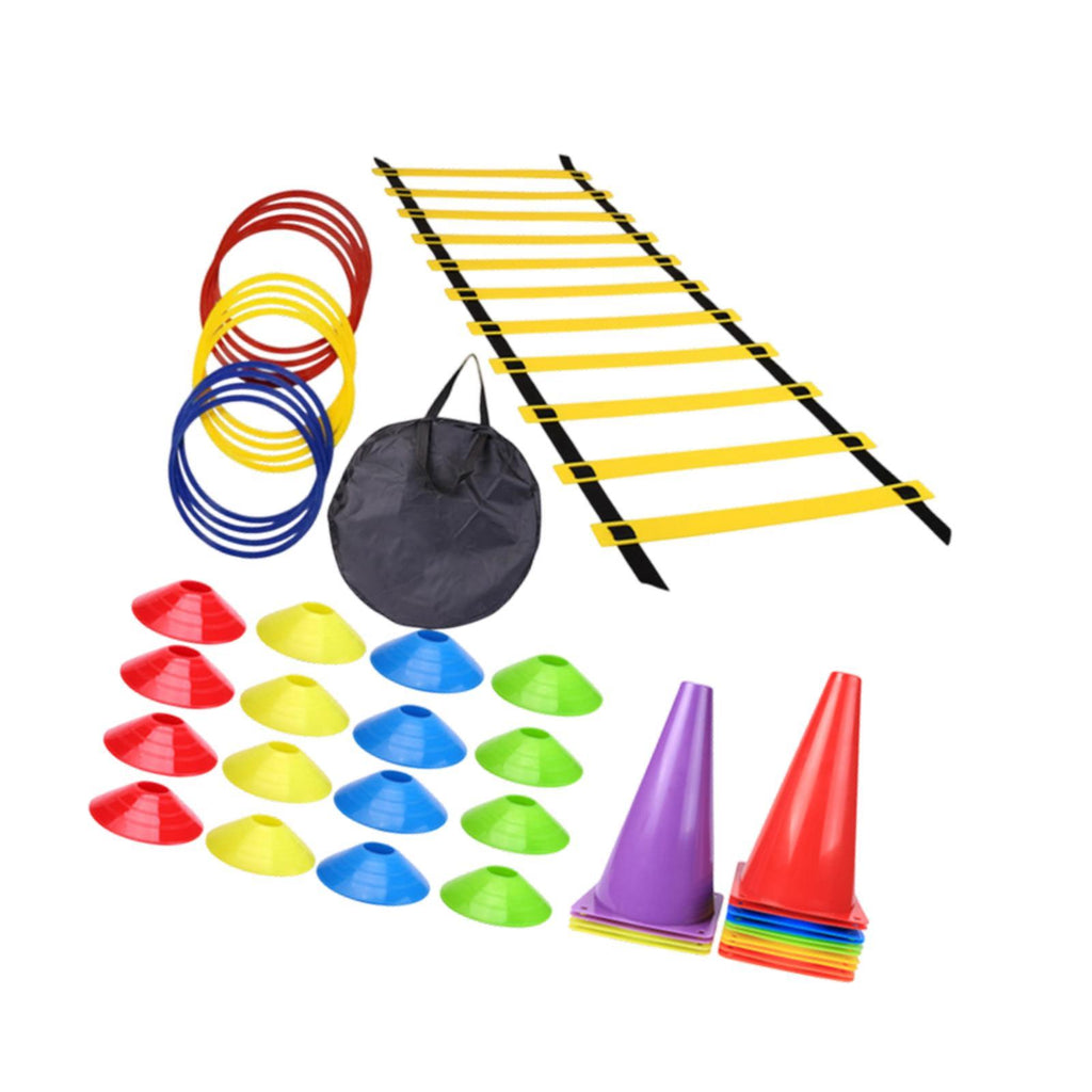1 Agility Ladder 16 Cones 16 Disc Cones 12 Train Ring 1 Carry BagNote: