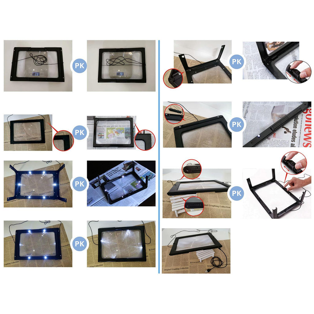 【Features】: Full Page 3x Magnifying Lens can be placed on the neck, can be placed on the desk, full page enlargement, easy to read. With 6 LED lights.