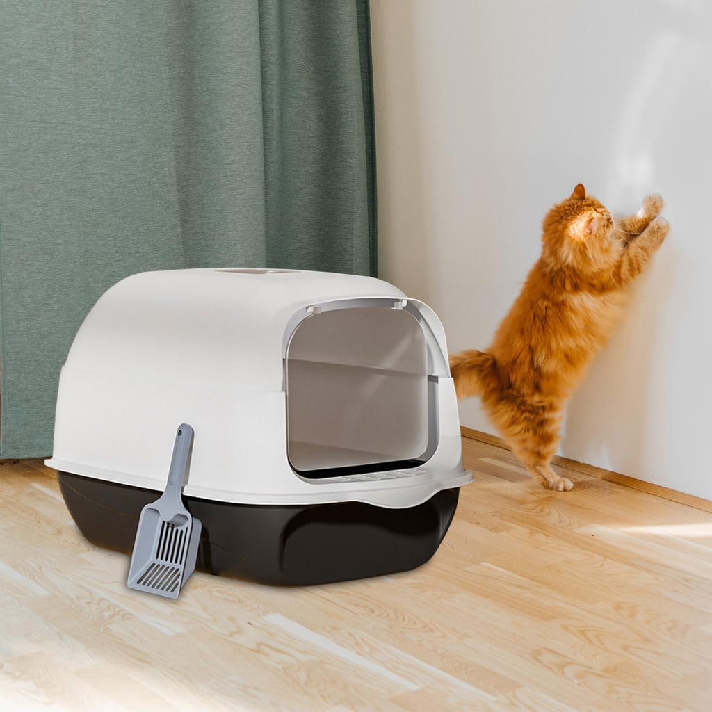 【Enclosed Cat Litter Boxes】: Enclosed litter boxes minimize the spread of litter boxes odor through your home and they may help contain spray and litter scatter better than open boxes.