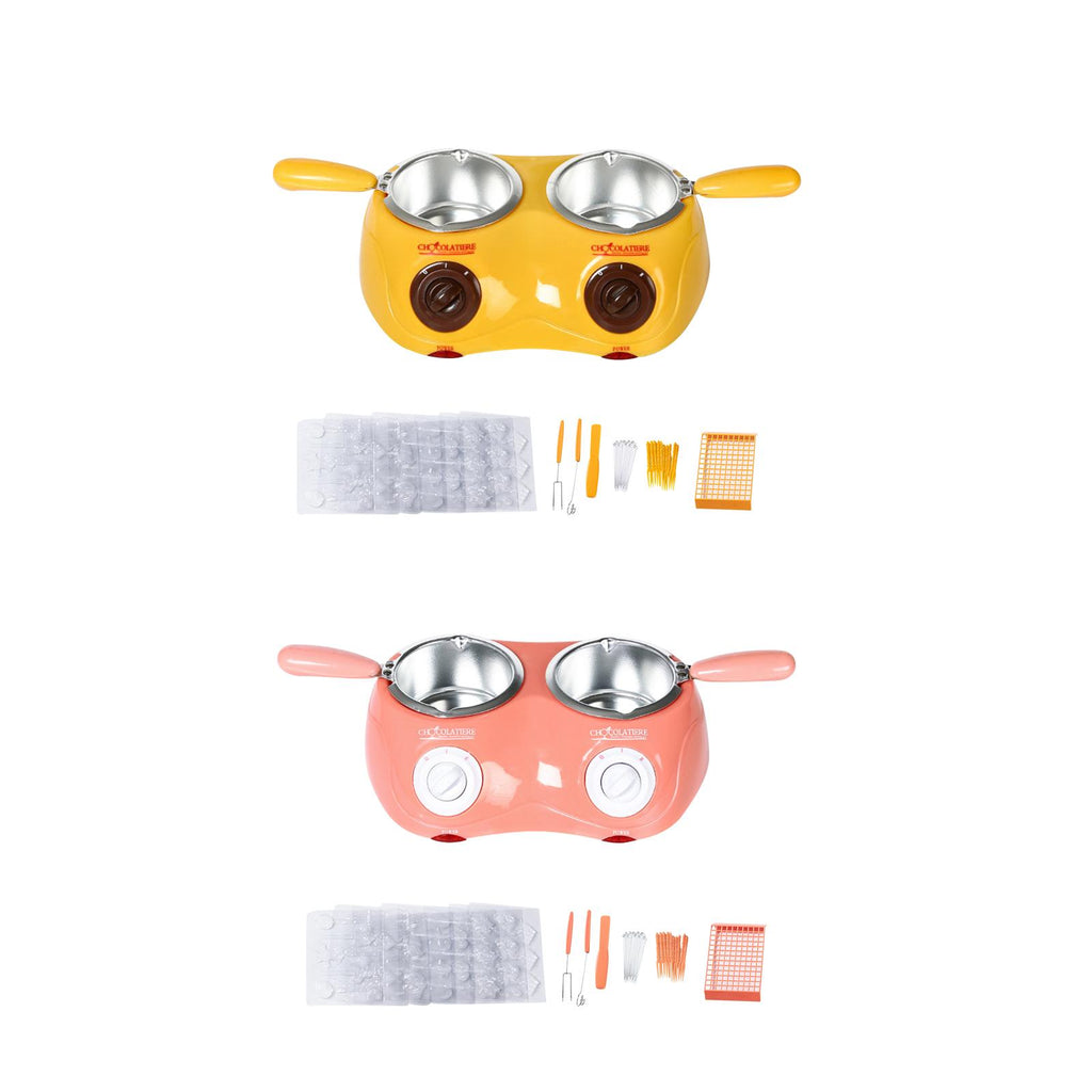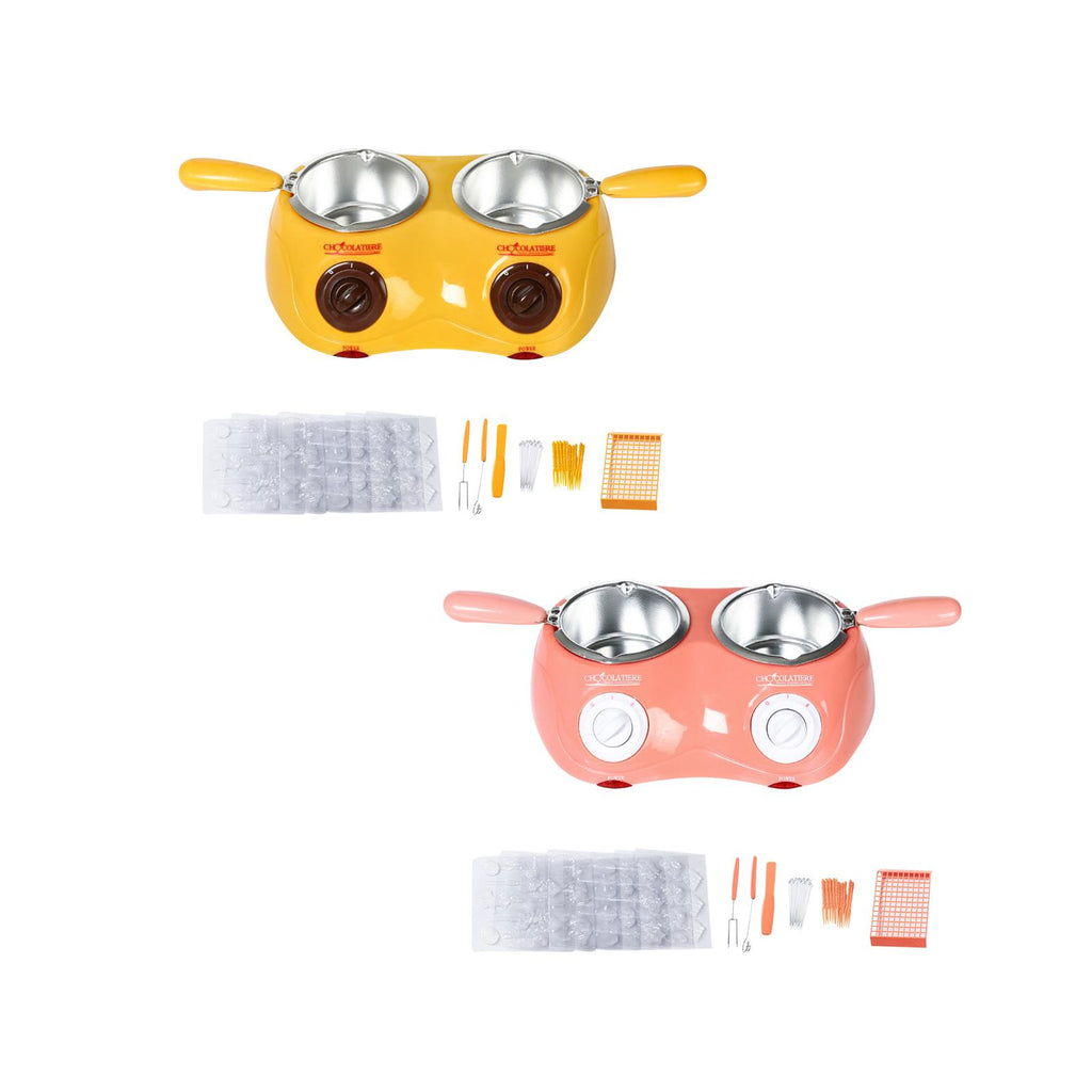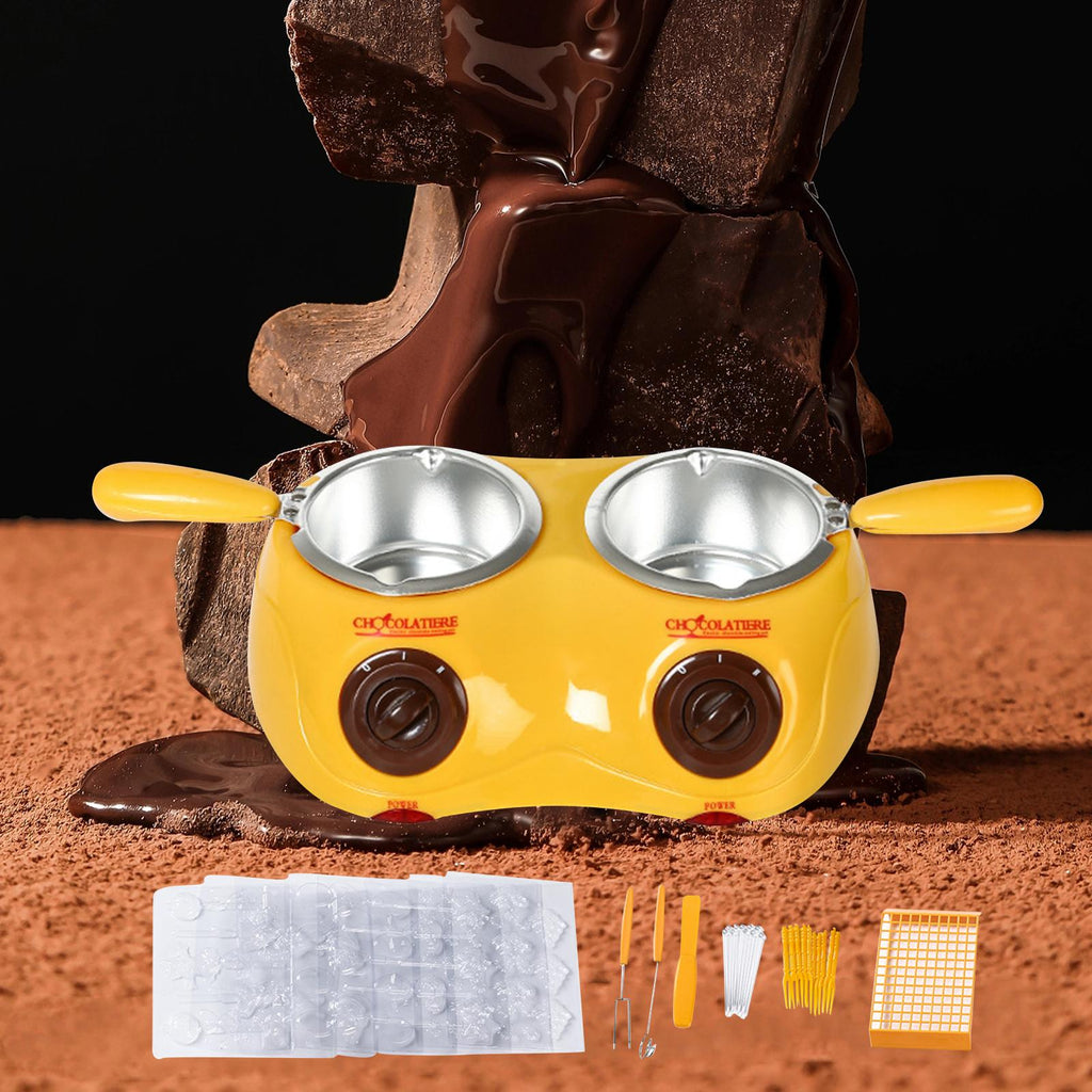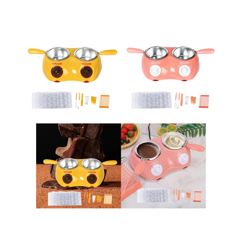 Maxbell Furnace Machine with Double Bowls Electric Chocolate Fondue for Candy Cheese Yellow