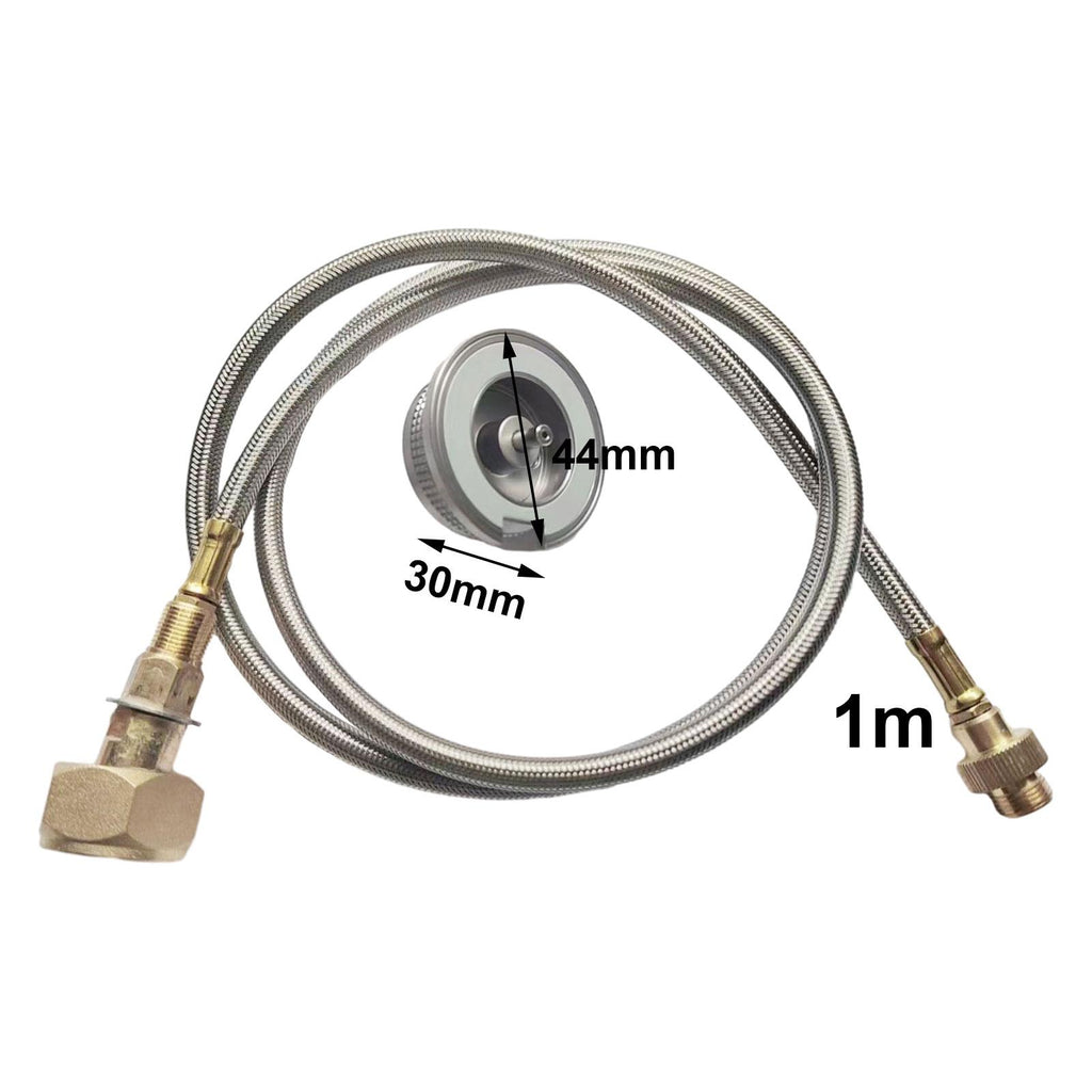 【PROPER SIZE】Gas Adapter is in size 4.4cmx3cm/1.73inchx1.18inch and the extension tube is in length100cm/39.37inch.